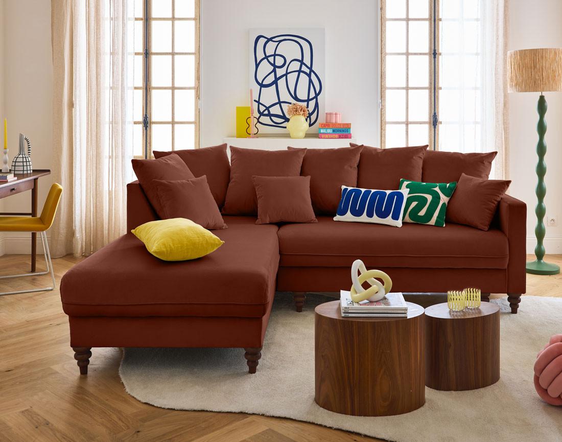 Flamingo - canapé d'angle gauche 4 places convertible en velours