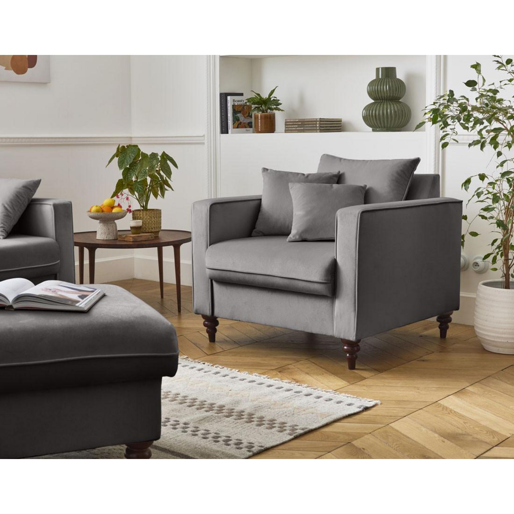 Profitez de la collection Flamingo pour créer un salon complet et harmonieux. Nul besoin d'être un pro en déco, il vous suffit d'assembler chaque élément en fonction de la configuration de votre salon. Par exemple, un canapé et deux fauteuils vous permettront de meubler un salon complet à l'aide de pièces fortes qui apporteront tout l'aspect cossu et cocooning de votre espace. Il ne vous restera plus qu'à installer quelques jolis éléments de décor comme une table basse et des luminaires d'ambiance pour enrichir votre espace de vie avec style.