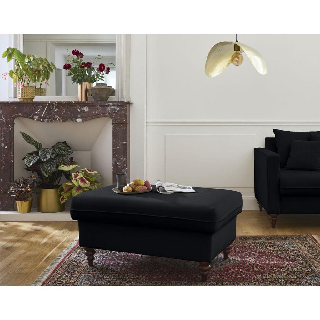 - Détail des matières : Assise : Mouse polyuréthane 30kg/m3 – Ressorts ondulés – Structure en bois et panneaux de particules – Revêtement en velours 100% polyester – Pieds en bois foncé
