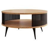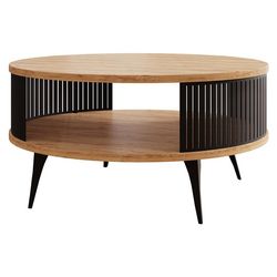 Forini - table basse ronde - aspect chêne naturel et noir - 1 niche - 75 cm