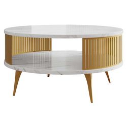Forini - table basse ronde - effet marbre blanc et doré - 1 niche - 75 cm