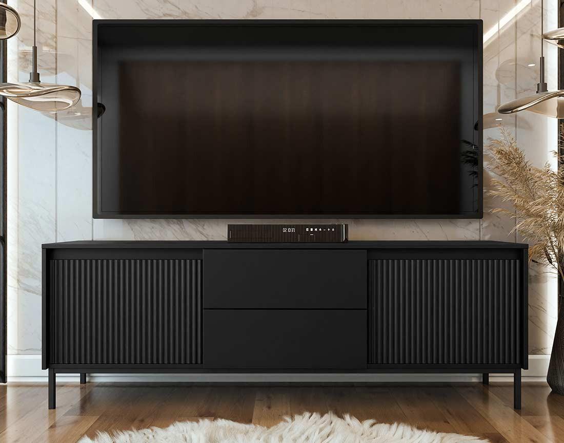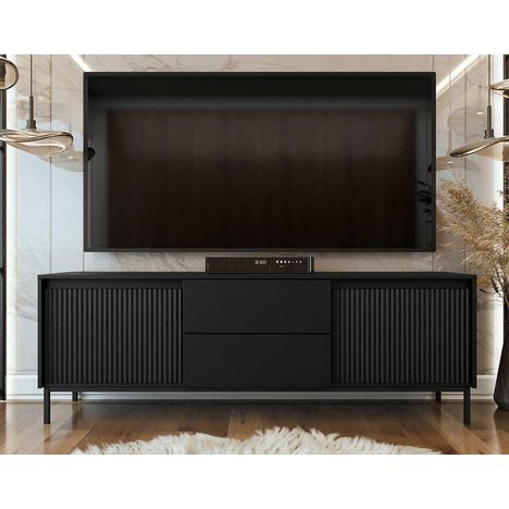 Girona - meuble tv - noir - 2 portes et 2 tiroirs - 174 cm