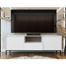 Girona n'est pas un simple meuble TV, mais une pièce maîtresse qui sublimera votre salon en lui conférant une allure résolument chic et moderne. Son design intemporel, caractérisé par des lignes épurées et des façades en relief d'une grande finesse, ne manquera pas de captiver l'attention. Ce meuble TV se distingue par sa couleur blanc immaculé, qui apporte une luminosité incomparable à votre pièce et agrandit visuellement l'espace. Ses pieds en métal noir, à la fois robustes et élégants, lui confèrent une touche intemporelle qui s'harmonise avec tous les styles de décoration.