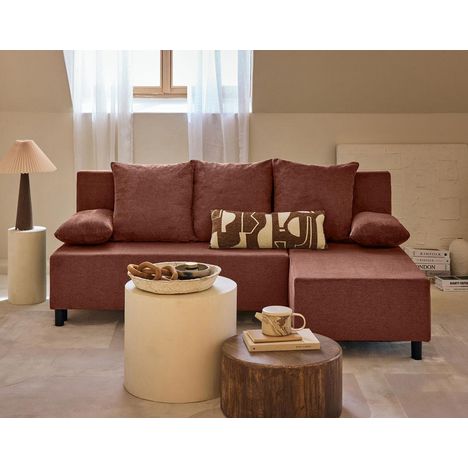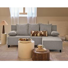 Gloria - canapé d'angle réversible 4 places convertible avec coffre en tissu texturé