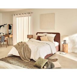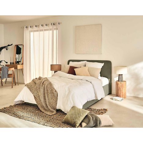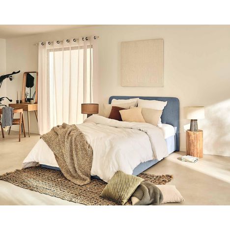 Son atout ? Son grand coffre de rangement dissimulé sous son sommier à lattes. Vous n'avez qu'à relever le sommier pour pouvoir y ranger vos affaires personnelles. De plus, fabriqué à la main en Europe, le lit coffre Goyave vous garantit solidité grâce à sa structure en bois mais également confort avec sa tête de lit rembourrée.