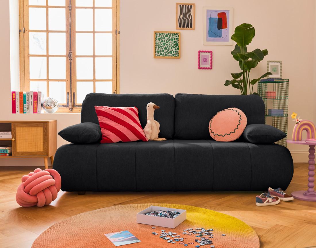 Le canapé Harper est aussi un véritable atout fonctionnel pour votre pièce à vivre. D'un simple geste, son dossier se rabat pour se transformer en un lit d'appoint. Idéal pour accueillir des invités ou profiter d'une sieste improvisée, ce système convertible est très intuitif. L'assise et le dossier rembourrés garantissent un couchage confortable. Harper est également doté d'un coffre de rangement intégré sous l'assise centrale. Avec des dimensions généreuses, ce compartiment est un gain de place astucieux. Rangez y vos plaids, vos oreillers, vos couvertures ou même les jouets de vos enfants. En bref, tout ce dont vous avez besoin régulièrement, mais que vous ne voulez pas avoir sous les yeux.