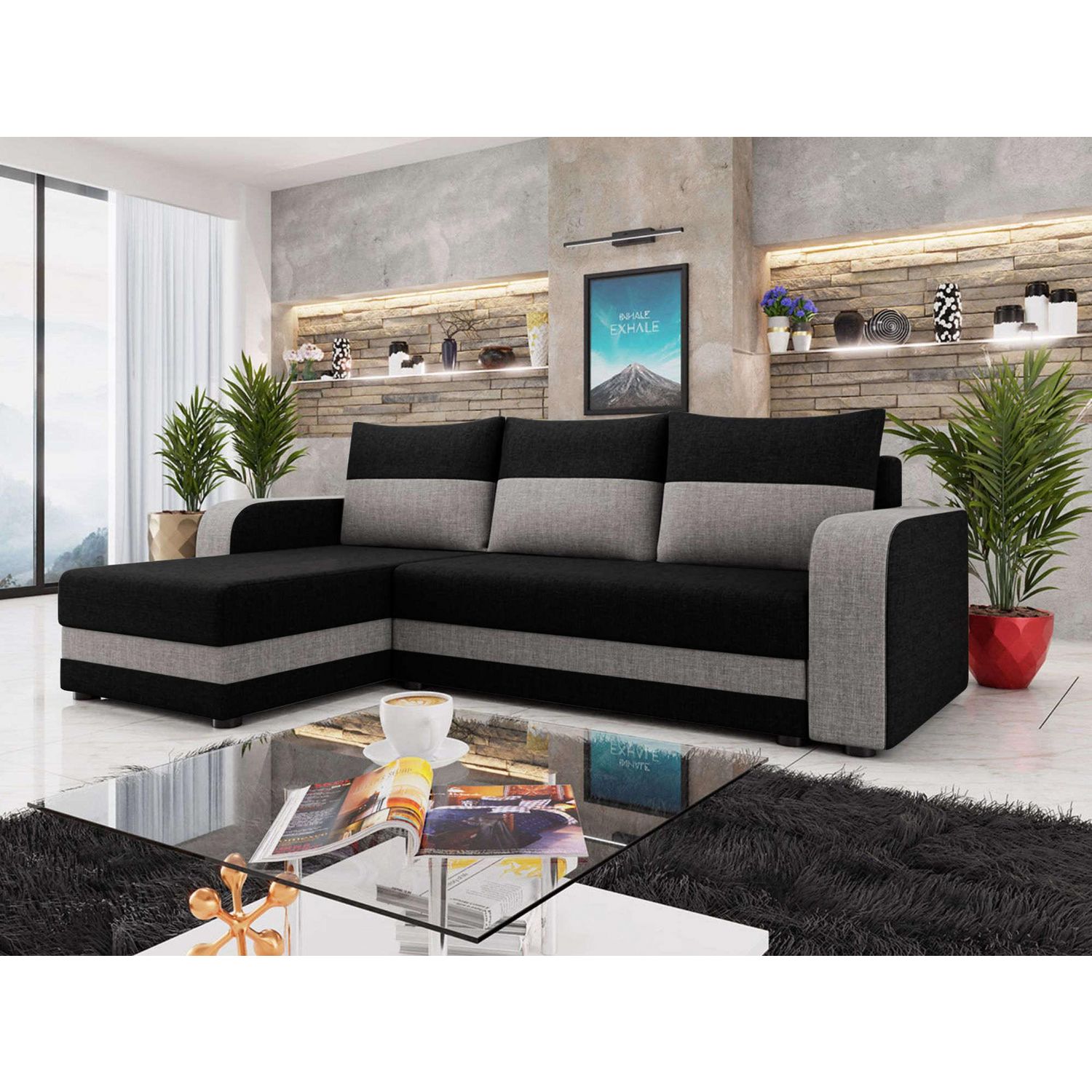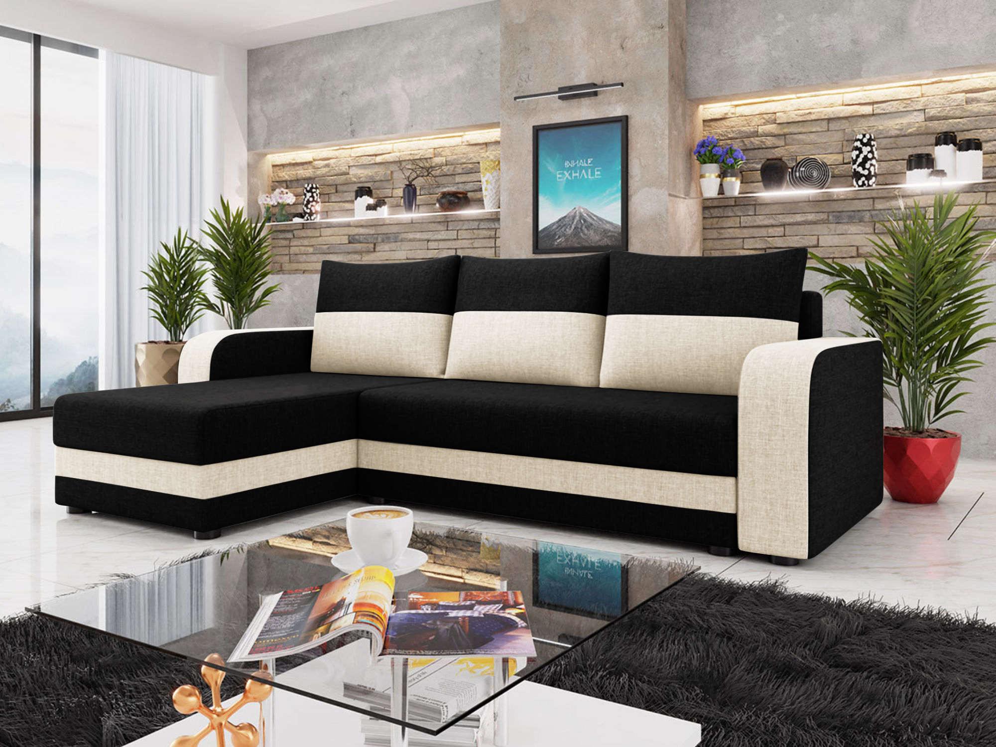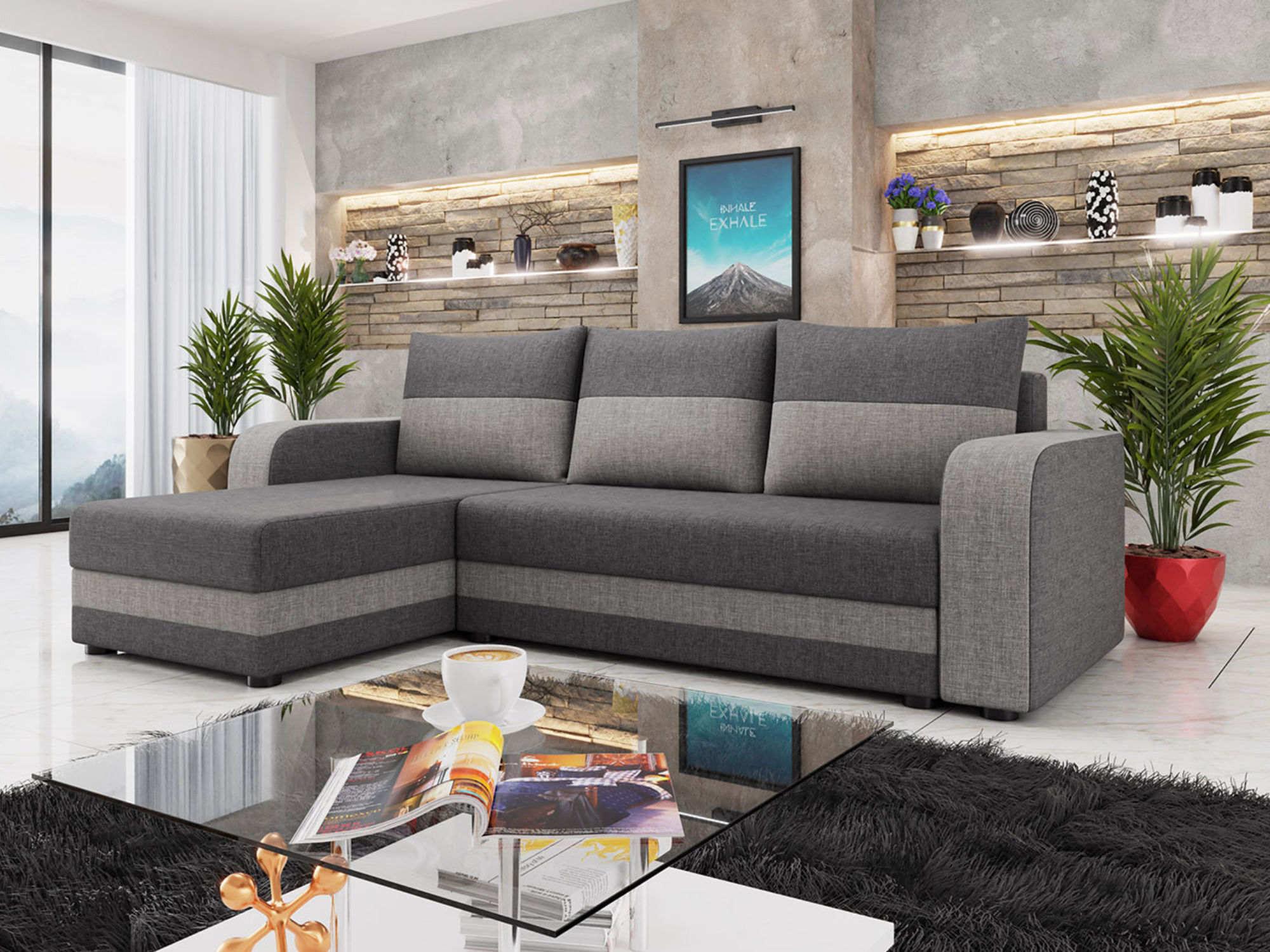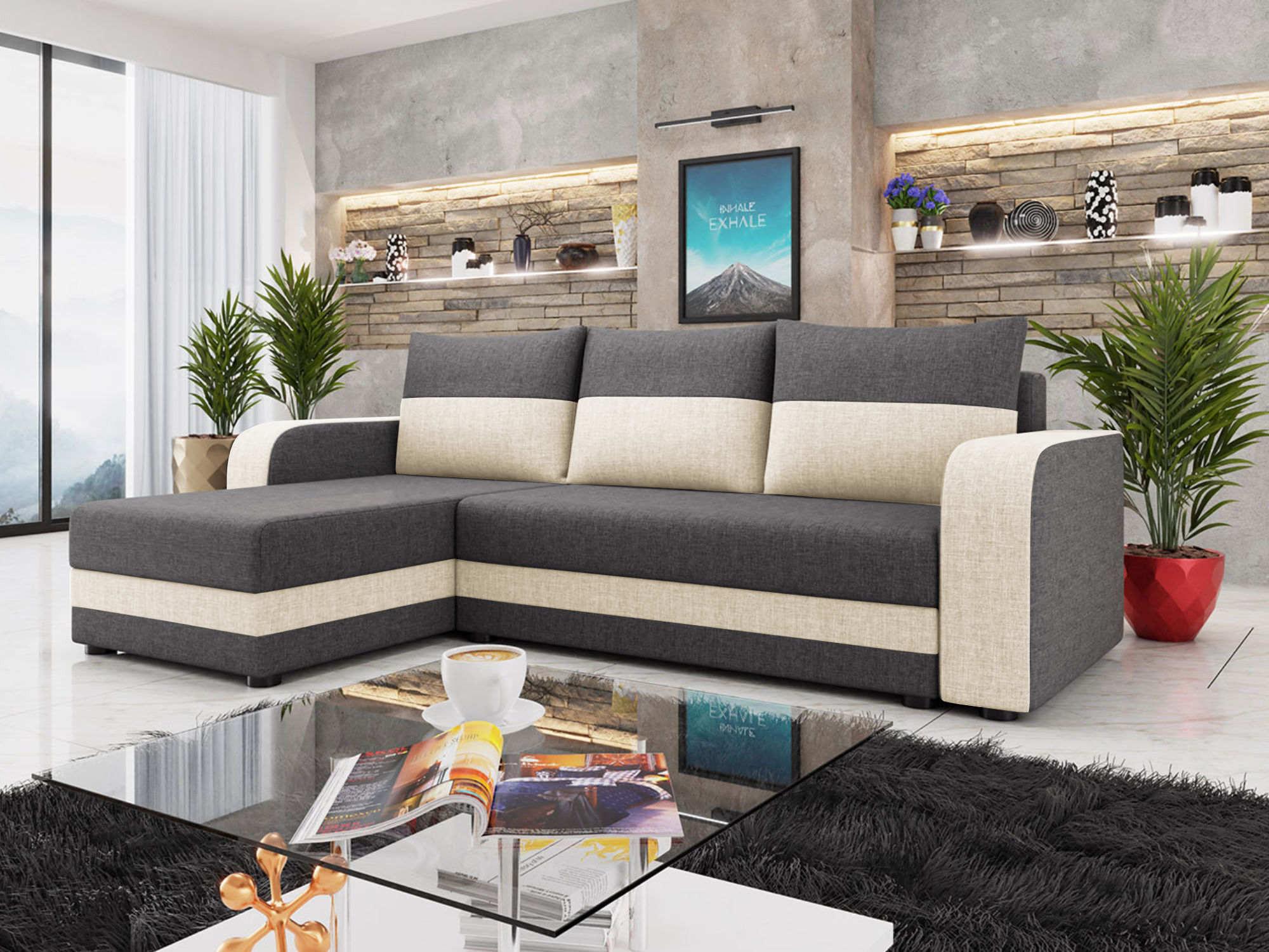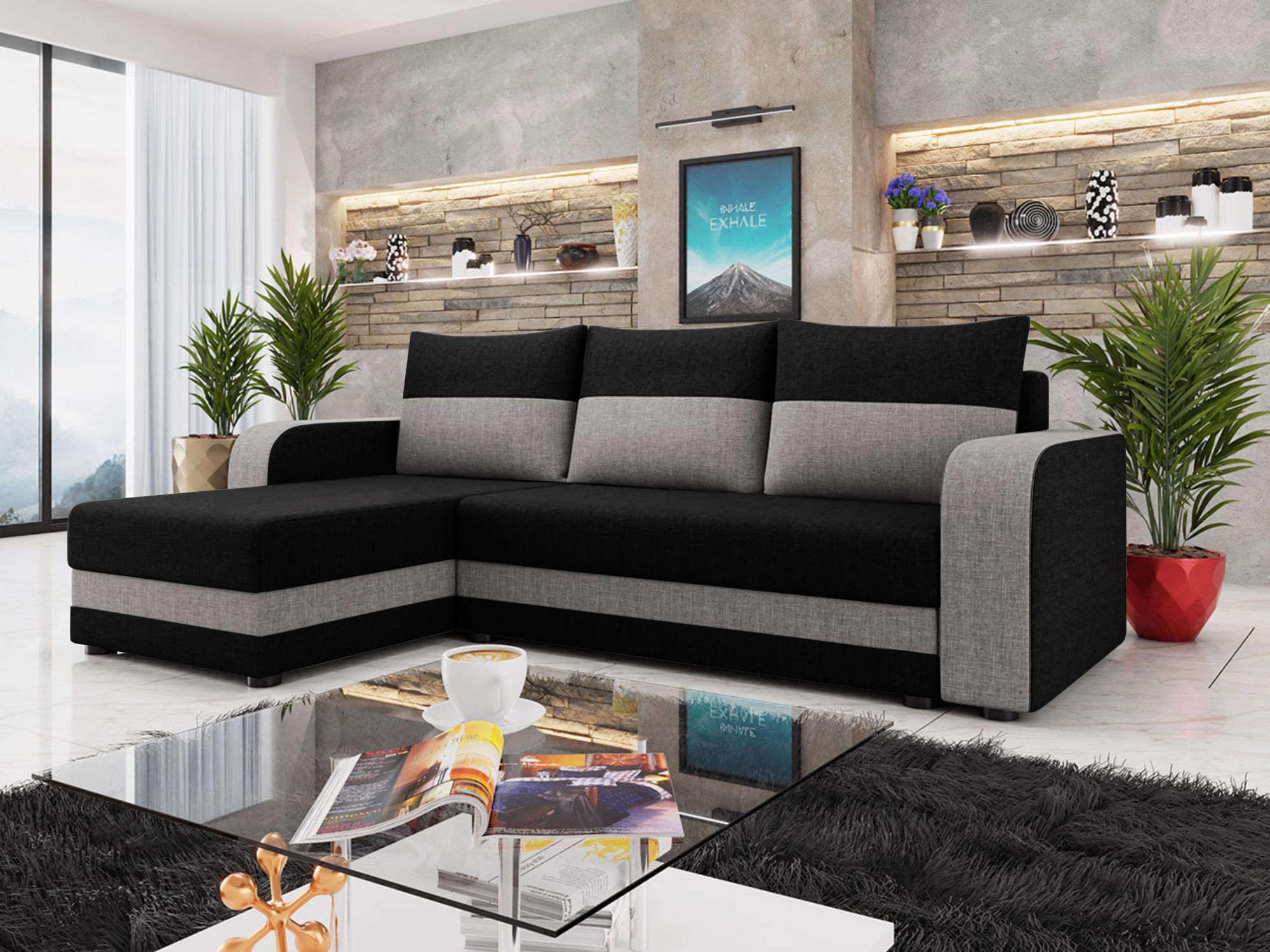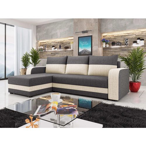 Harvey - canapé d'angle réversible 4 places convertible avec coffre en tissu bicolore