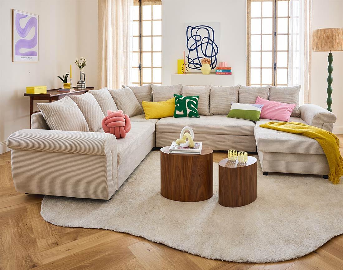 À la fois accueillant et élégant, le canapé panoramique Henry fait partie des assises de salon que ne l'on veut plus quitter. Vous adorerez vous y lover après une dure journée en profitant de ses dimensions généreuses et de son irrésistible revêtement en velours côtelé. Pile dans la tendance du moment, ce modèle de canapé laisse place à 7 convives : son format XXL est donc idéal pour vous permettre d'y réunir toute votre famille ou vos amis. Avec son allure raffinée et contemporaine, le canapé panoramique Henry s'intègrera facilement dans tous types de décoration.