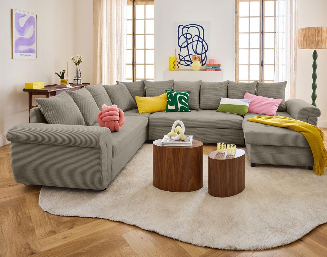 Henry - canapé panoramique convertible - avec coffre - en velours côtelé - 7 places