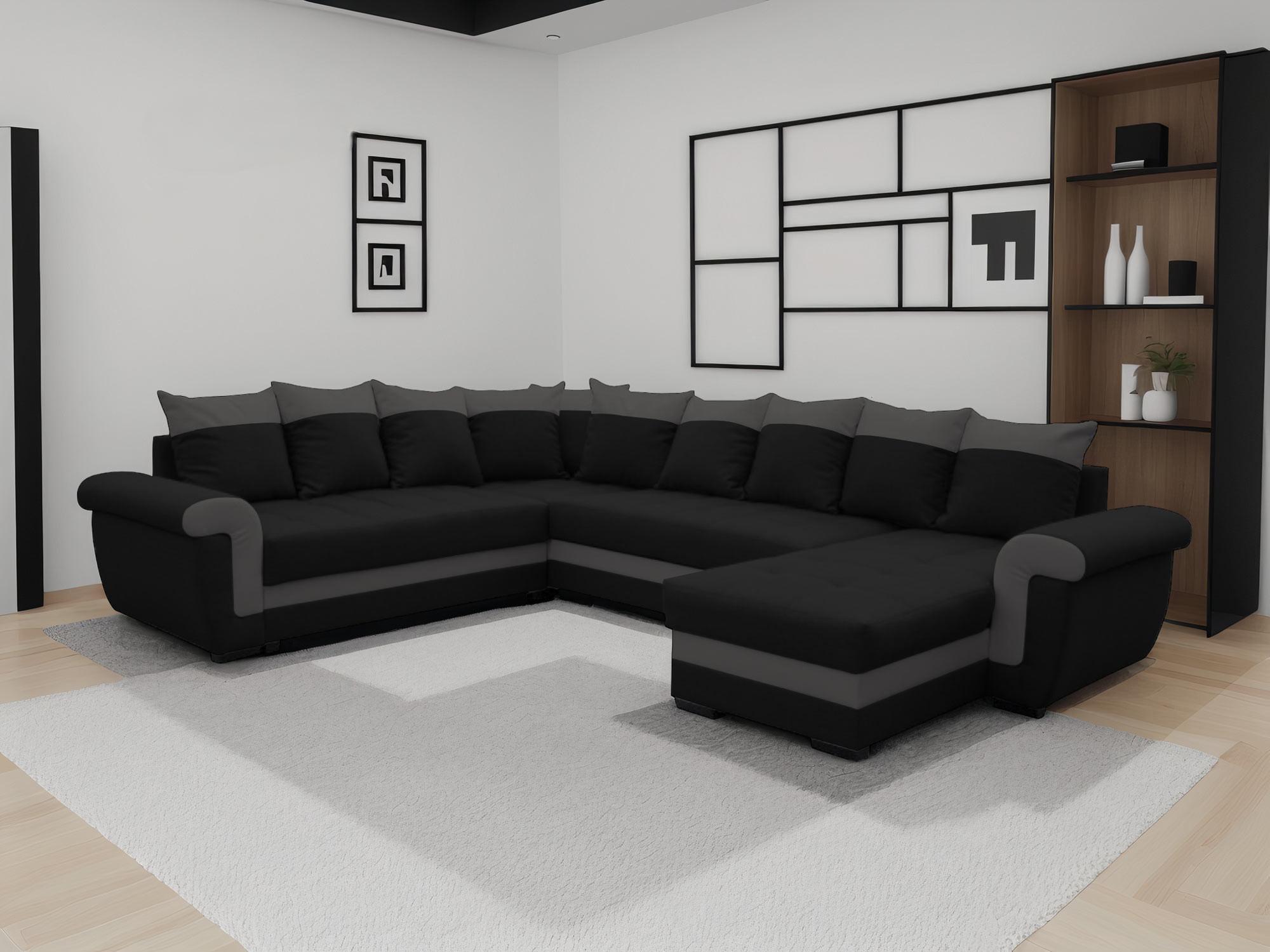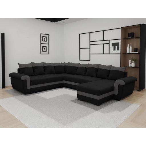 Henry - canapé panoramique d'angle réversible - 7 places - convertible avec coffre - en tissu et pu