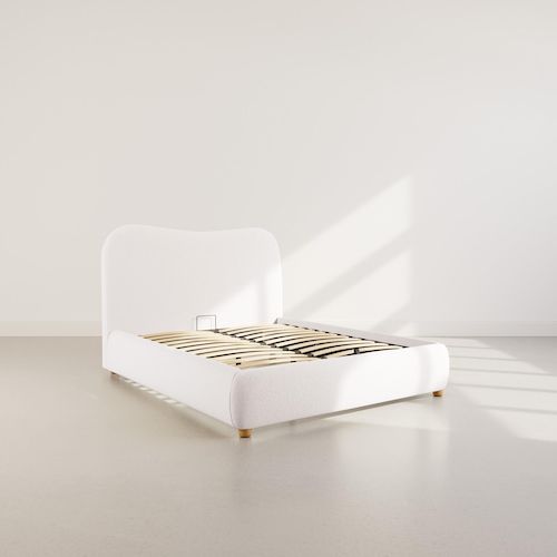 - Présentation de la collection : Offrez à votre chambre un look élégant et pratique avec le lit coffre Hugo, disponible en tissu bouclette au toucher unique, alliant confort, rangement et style moderne.