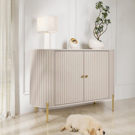 Son large plateau met en valeur vos objets déco, qu'il s'agisse de plantes, cadres ou accessoires design. Avec ses pieds en métal, le buffet Jaime assure stabilité et durabilité au fil du temps, tout en apportant une touche contemporaine à votre intérieur.