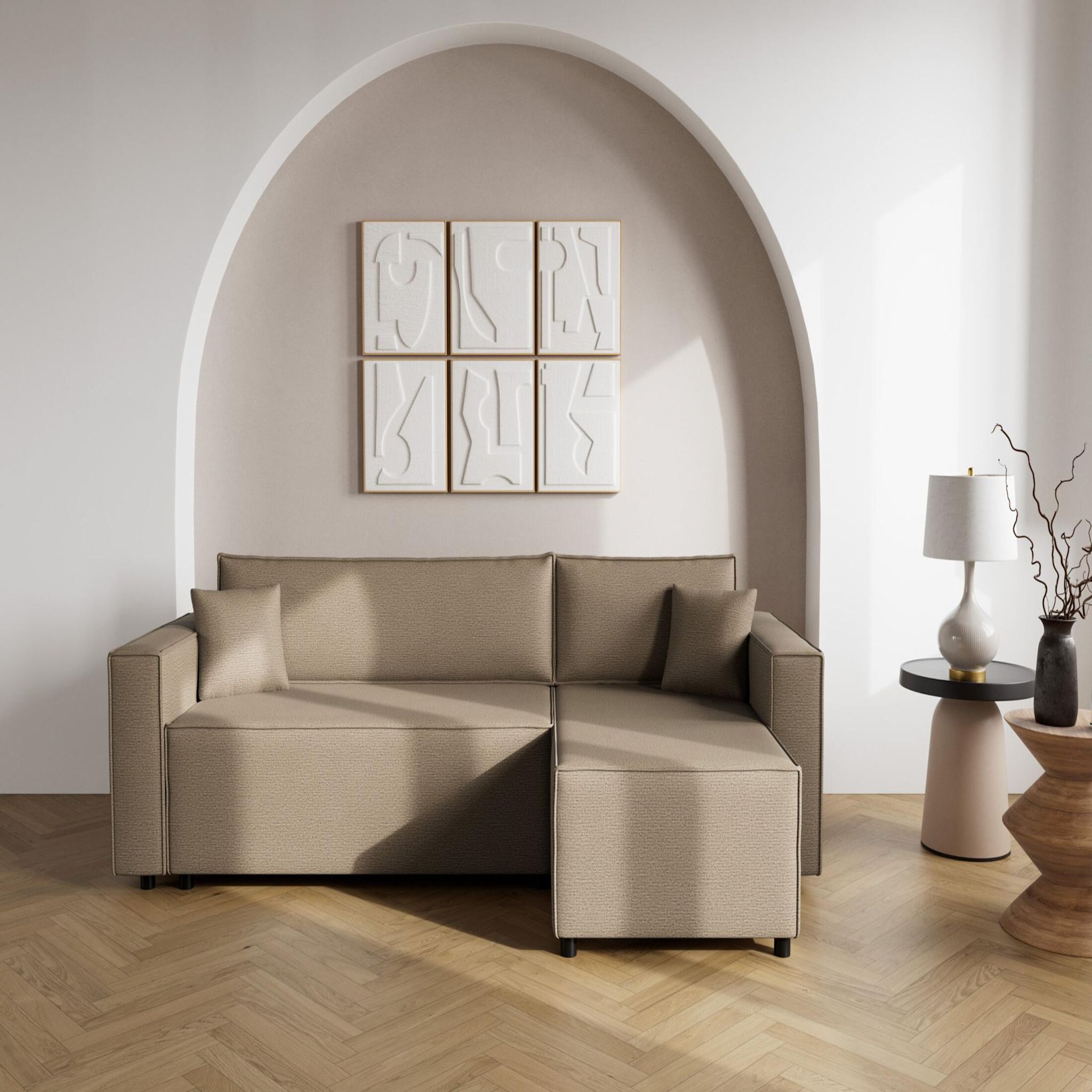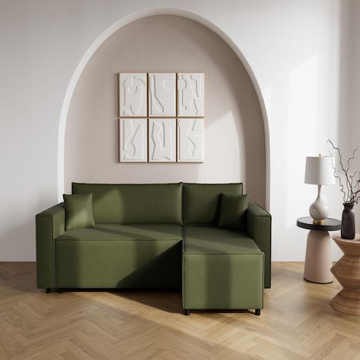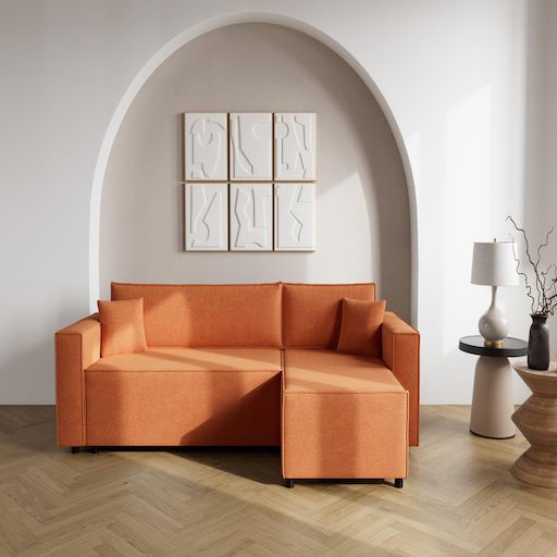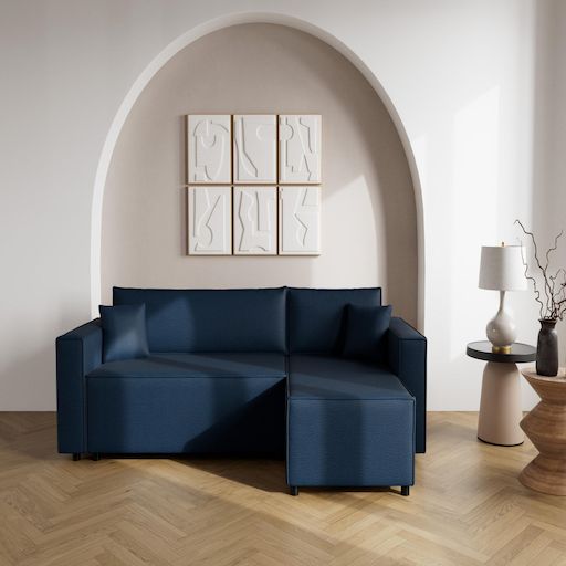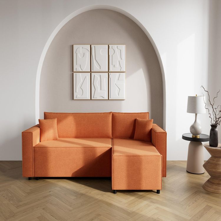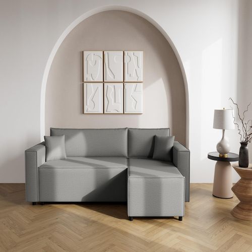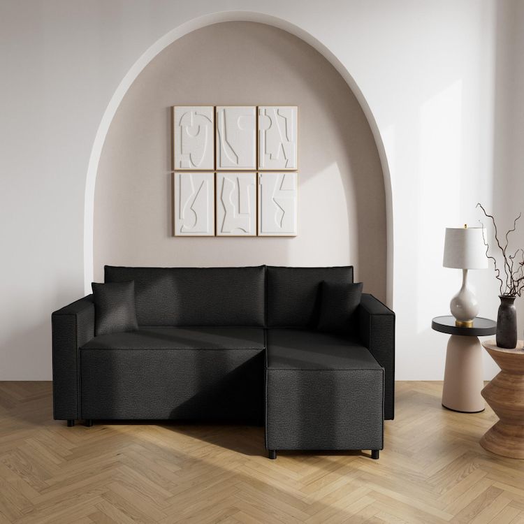 Avec son design réversible, le canapé d'angle Jonas s'adapte facilement à votre espace, que vous ayez besoin d'un angle à droite ou à gauche. Pratique et accueillant, il se transforme en lit en quelques gestes, idéal pour recevoir ou profiter d'un moment de détente prolongé. Son coffre de rangement intégré vous permet de garder plaids et coussins à portée de main, tout en gardant un salon ordonné.