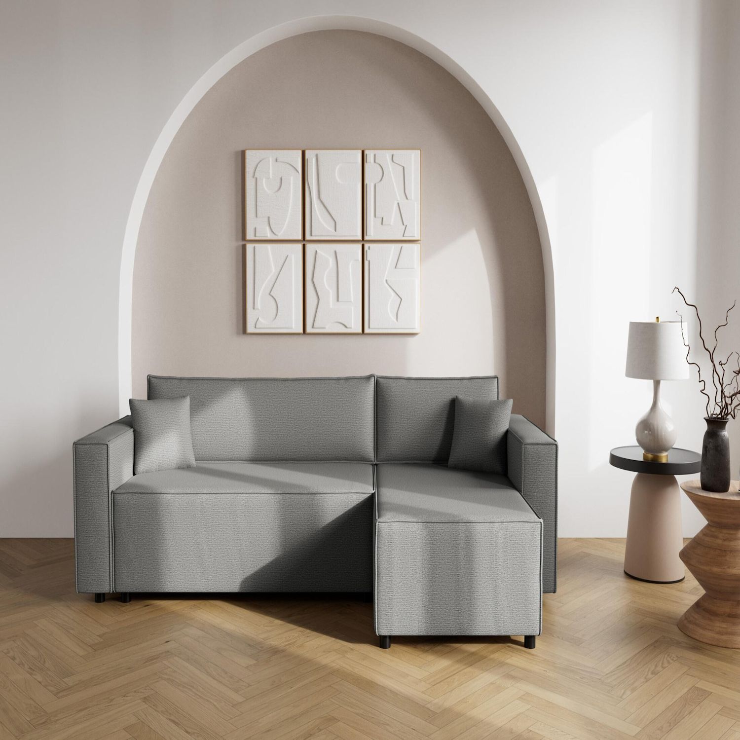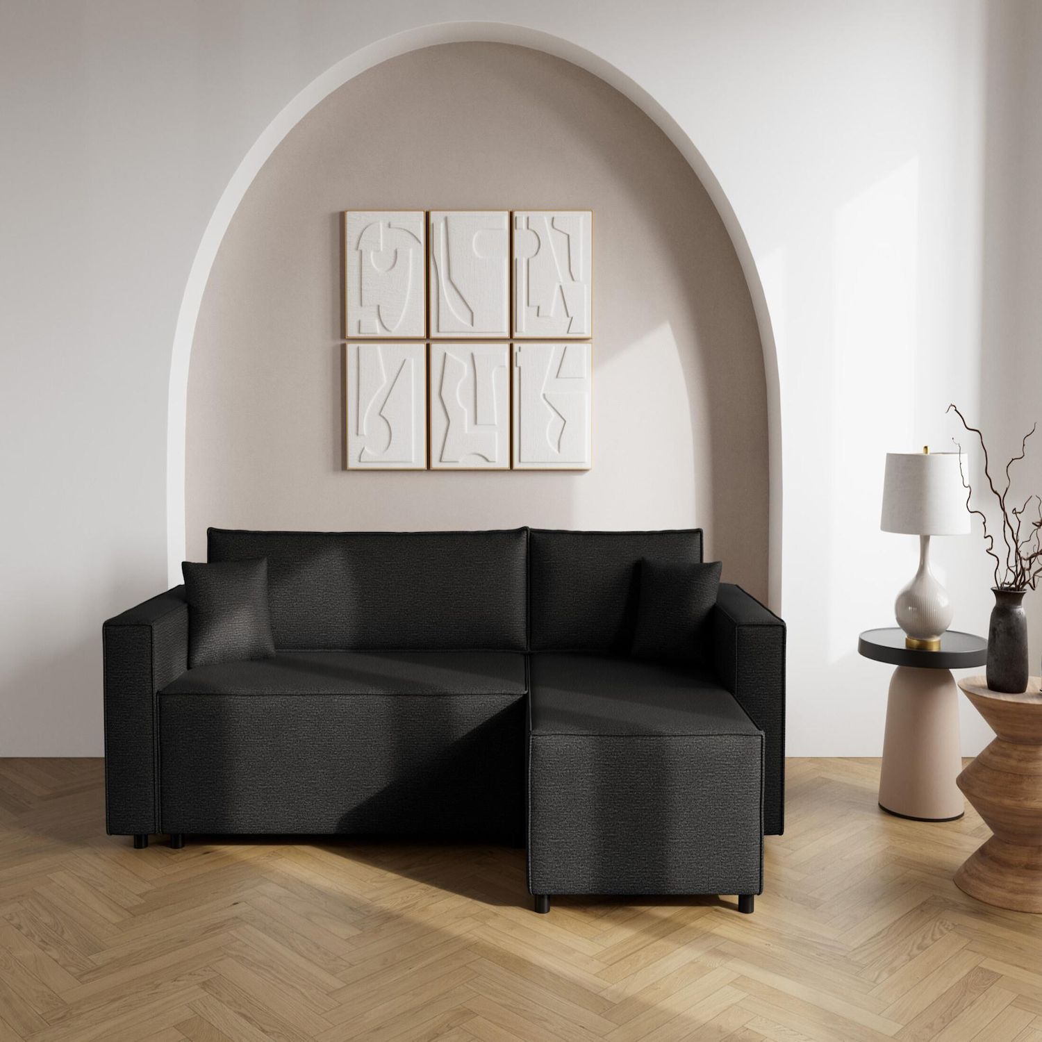 Jonas - canapé d'angle réversible 4 places convertible avec coffre en tissu texturé