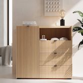 En plus de sa capacité de rangement, ce buffet bas propose une niche ouverte pour mettre en valeur vos objets décoratifs ou garder un accessoire à portée de main. Son large plateau vous permet également d'exposer vos plus belles décorations et d'apporter une touche esthétique à votre intérieur.