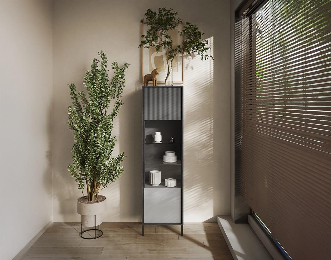 La vitrine Jules, avec ses dimensions de 55x203 cm, est idéale pour exposer et ranger vos objets précieux. Dotée d'une porte vitrée, elle met en valeur votre vaisselle, vos livres ou vos pièces décoratives tout en les protégeant. Son design contemporain, aux lignes épurées, s'intègre parfaitement dans une décoration moderne ou altique. Disponible en deux coloris raffinés, elle s'adapte à vos préférences pour sublimer votre intérieur.