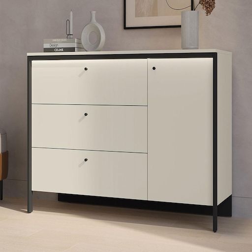 Commode Kimi 3 tiroirs et 1 porte : rangement pratique et modulable