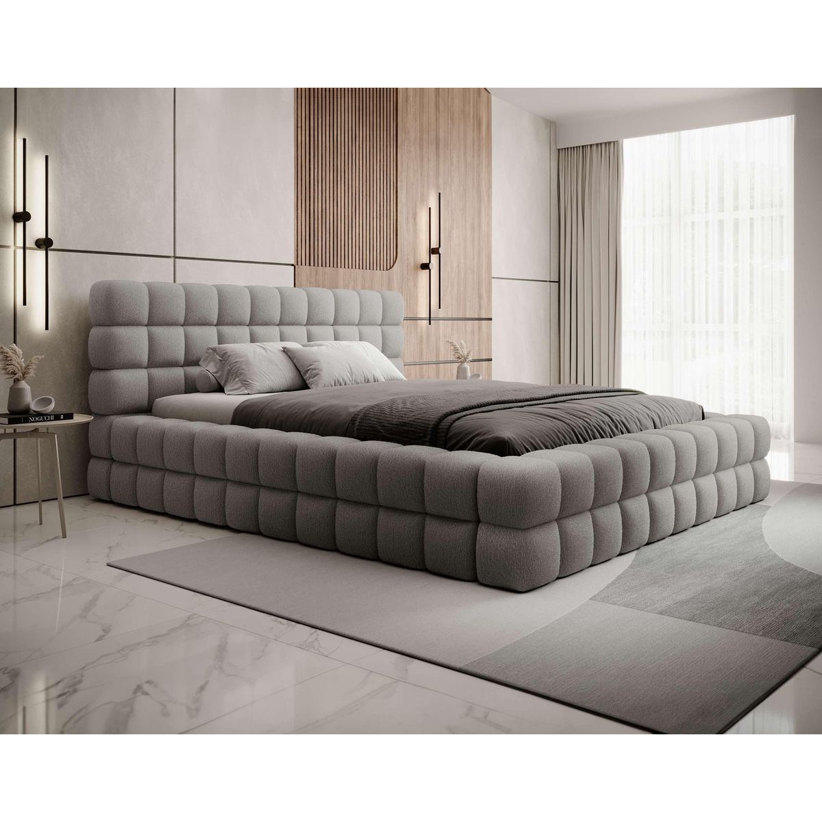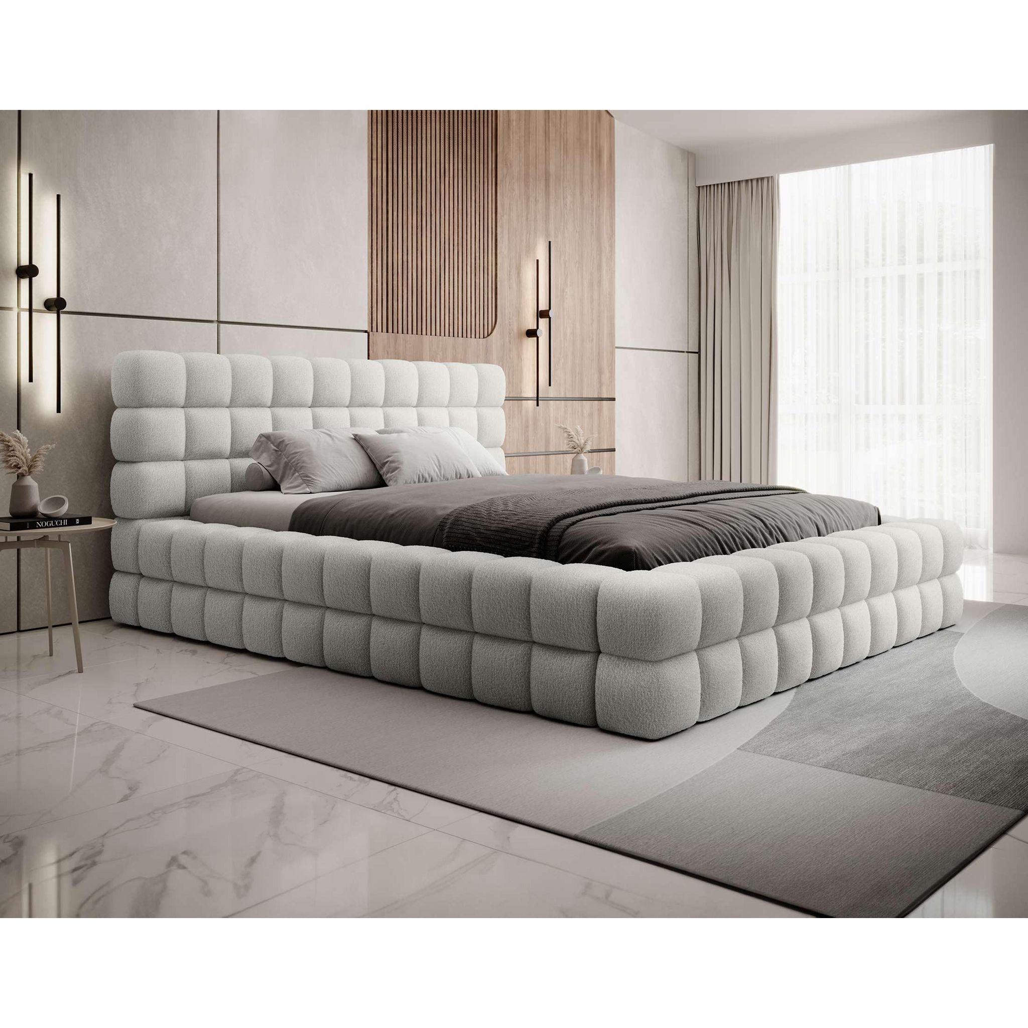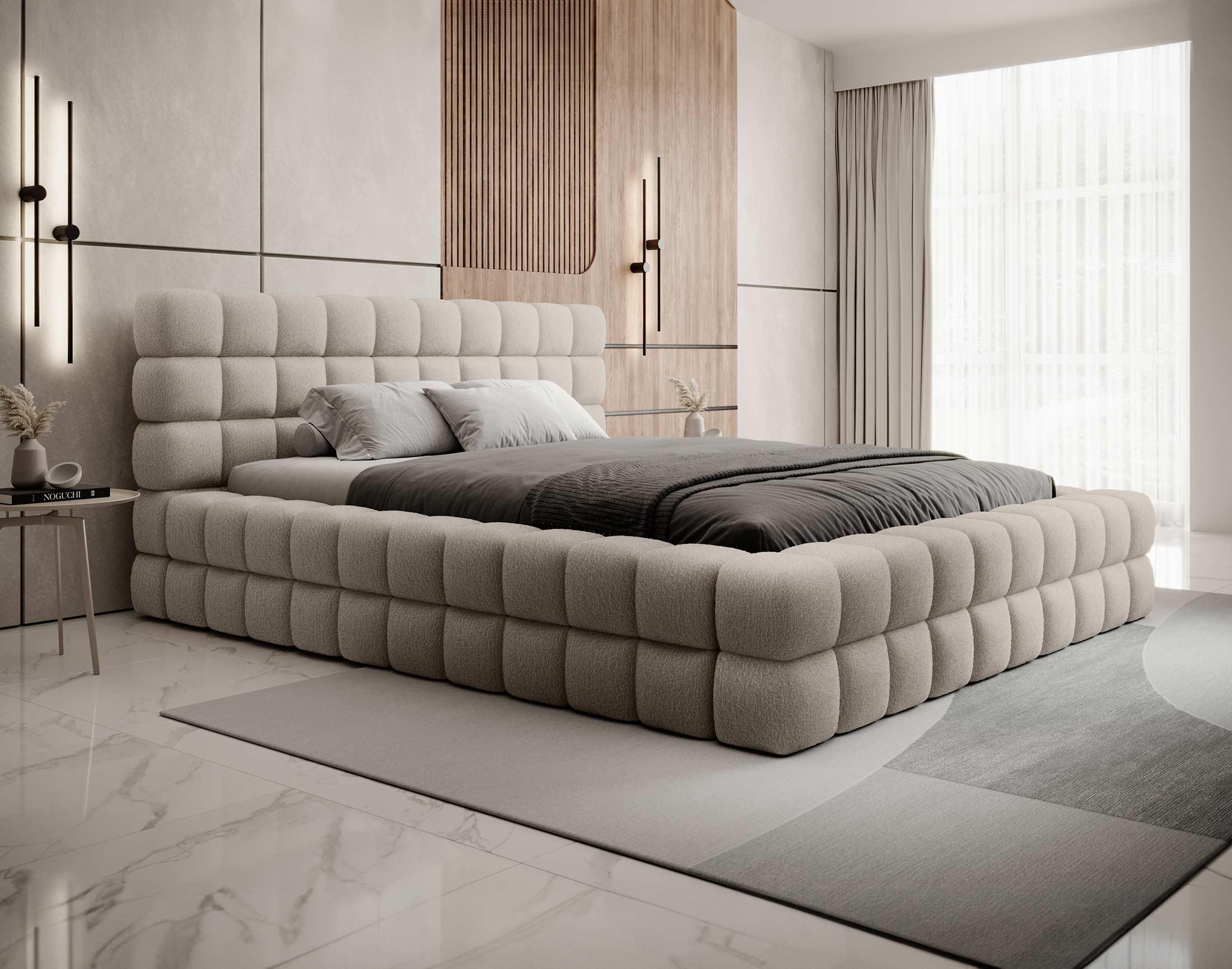 Un lit coffre élégant en tissu bouclette