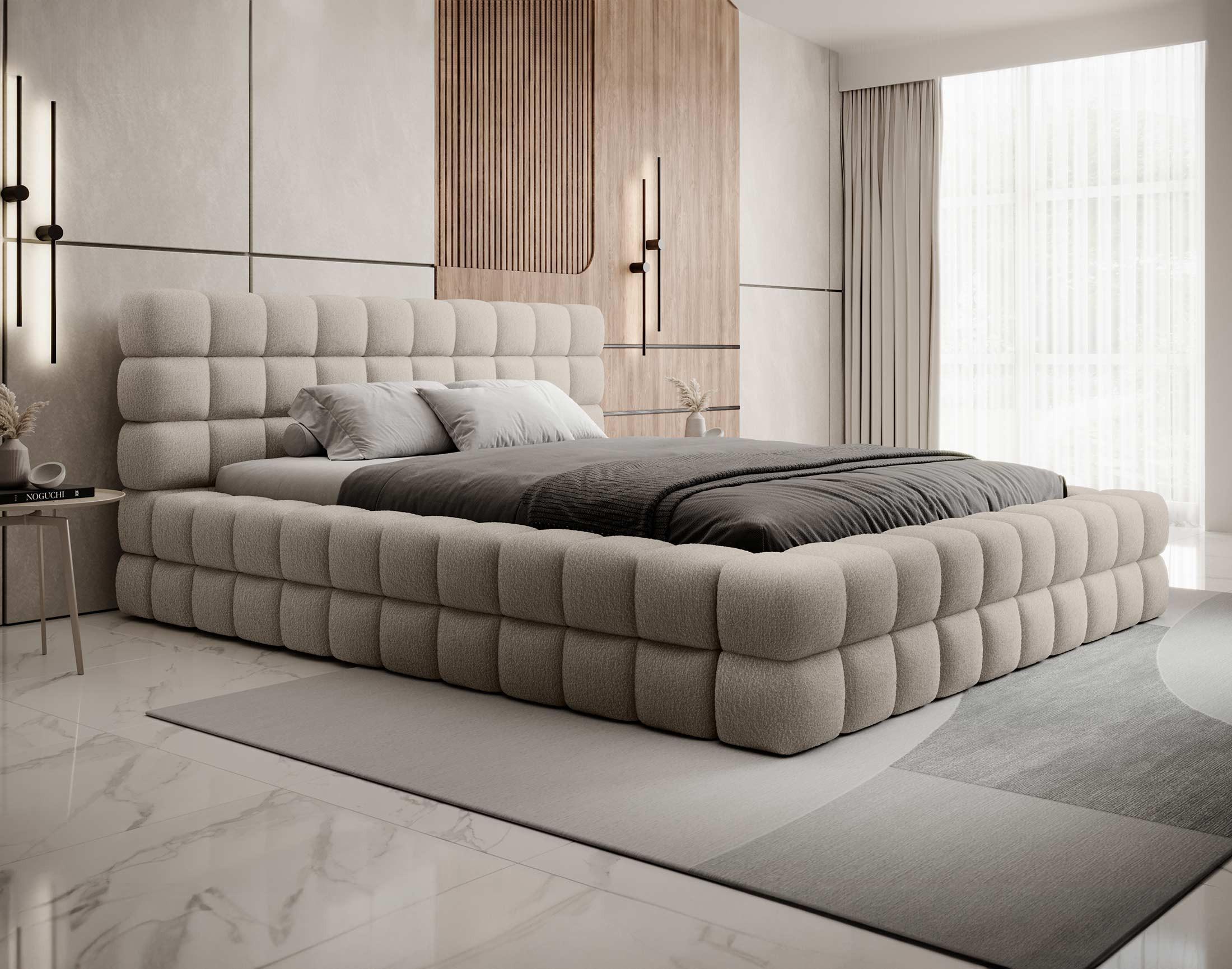 Un lit coffre élégant en tissu bouclette