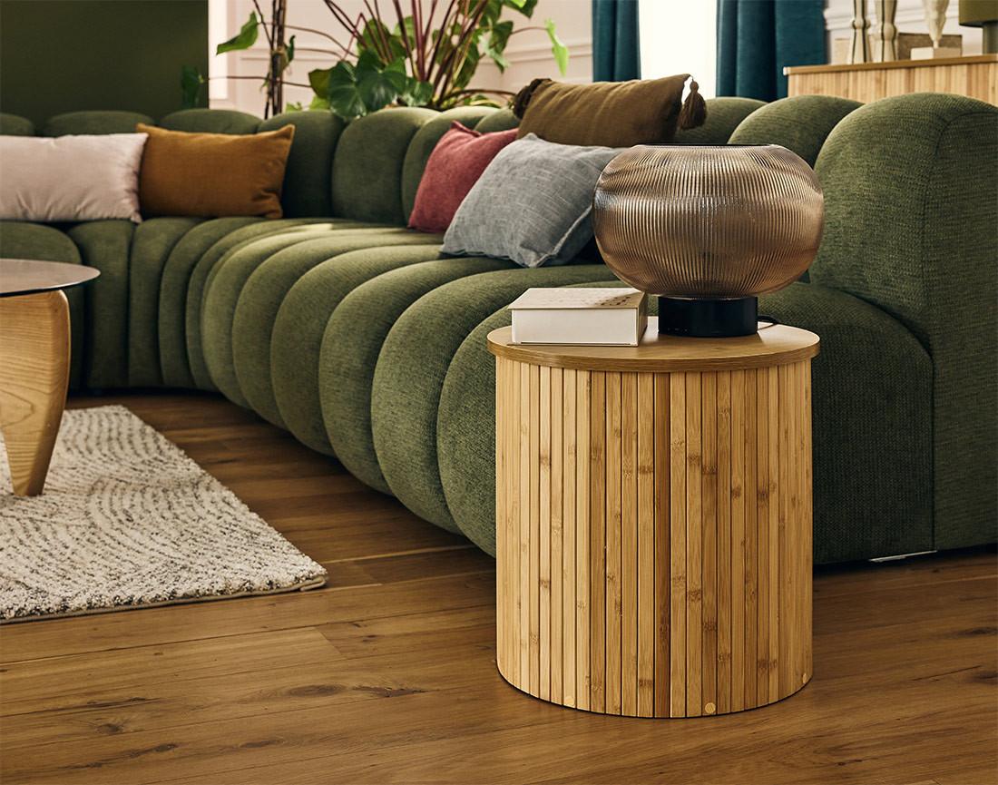 Le meuble Kofu est un élément de décoration à part entière. En bambou naturel, il apporte une touche organique à votre intérieur. Solide et résistant, il confère une touche chaleureuse à votre espace de vie. Il est léger et facile à manipuler avec ses 40 cm de diamètre. L'aspect naturel du bambou se marie parfaitement avec d'autres matériaux, comme le bois, le métal ou le tissu, ce qui le rend aisé à intégrer dans n'importe quel environnement. Le montage du bout de canapé Kofu est simple et rapide , vous pouvez en profiter dès réception du colis.