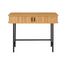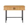 La console Kofu conjugue design et praticité. Ce contraste entre la douceur du bois et l'aspect brut du métal crée un équilibre parfait. Ses dimensions de 100 cm de large en font un choix idéal pour les petits espaces. Dans une entrée pour accueillir vos objets du quotidien, dans un salon pour exposer des éléments décoratifs, ou même dans une chambre en tant que coiffeuse légère, la console Kofu s'adapte facilement à vos besoins. Ses emplacements spacieux permettent de ranger vos affaires à l'abri de la poussière, tout en les gardant à portée de main.