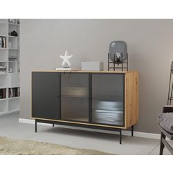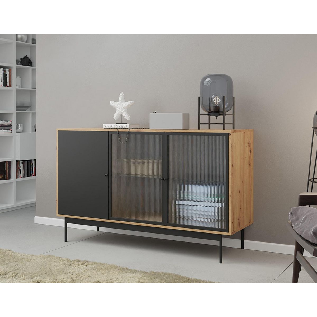 Lamia - buffet bas - effet bois et noir - 3 portes - 148 cm