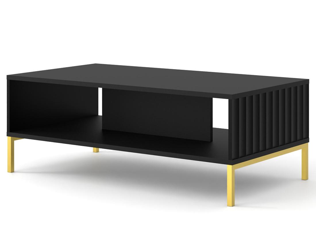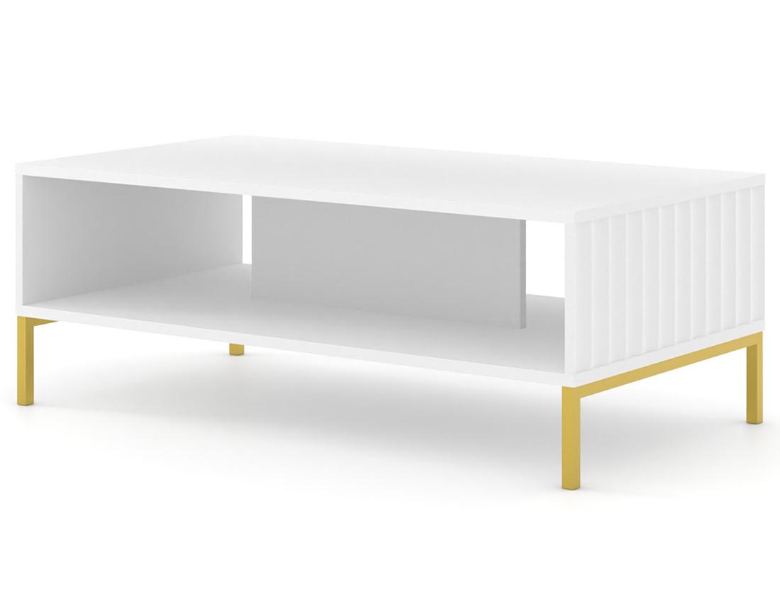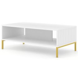 La table basse Lara de 90 cm se démarque par son design moderne avec des façades lignées et des pieds dorés, apportant une touche de sophistication à votre salon. Sa teinte satinée complète une décoration contemporaine, tandis que ses compartiments de rangement pratiques vous permettent d'organiser facilement vos objets du quotidien. Ce meuble élégant fait partie de la collection Lara, offrant une harmonie parfaite pour votre intérieur.