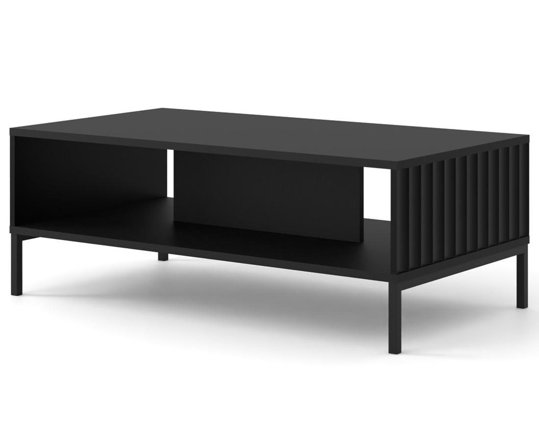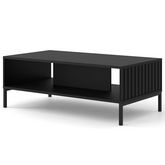 La table basse Lara de 90 cm séduit par son design épuré, ses façades lignées et ses pieds noirs qui ajoutent une touche contemporaine à votre salon. Sa teinte satinée accentue son élégance et s'intègre parfaitement dans une décoration moderne. Pratique et fonctionnelle, elle offre plusieurs compartiments de rangement pour organiser vos objets du quotidien, tout en conservant un espace de vie ordonné. Ce meuble s'harmonise idéalement avec les autres éléments de la collection Lara, créant une ambiance chic et raffinée.