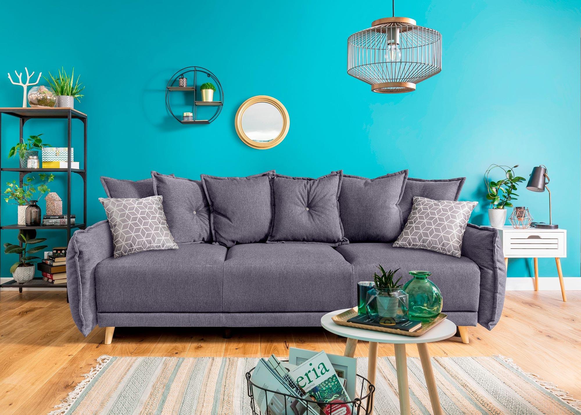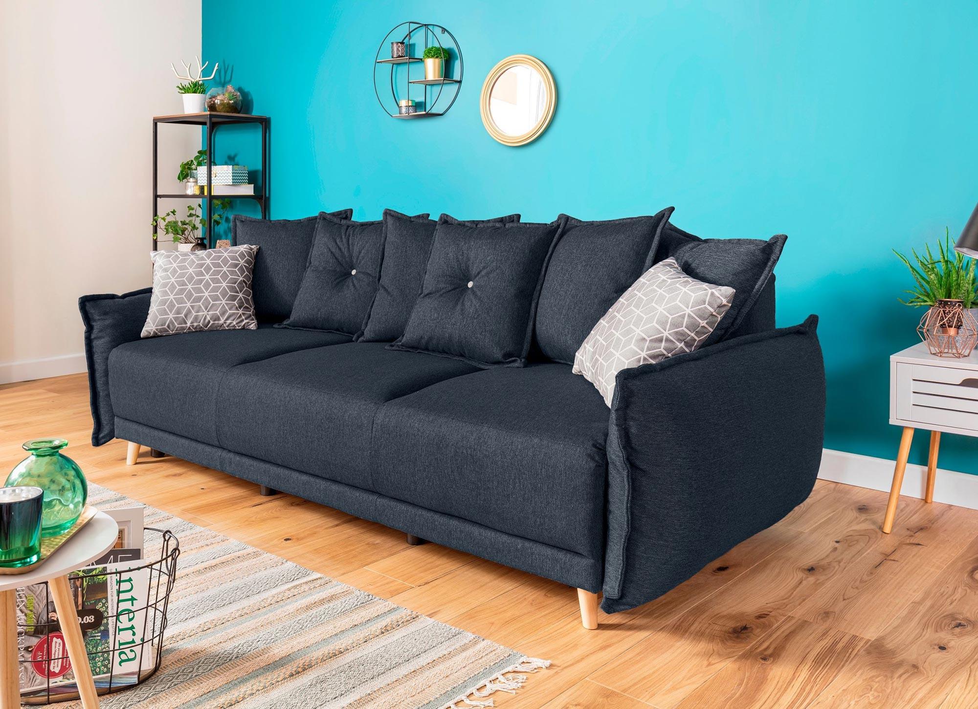 Lena - canapé 3 places convertible - avec coffre - en tissu style scandinave