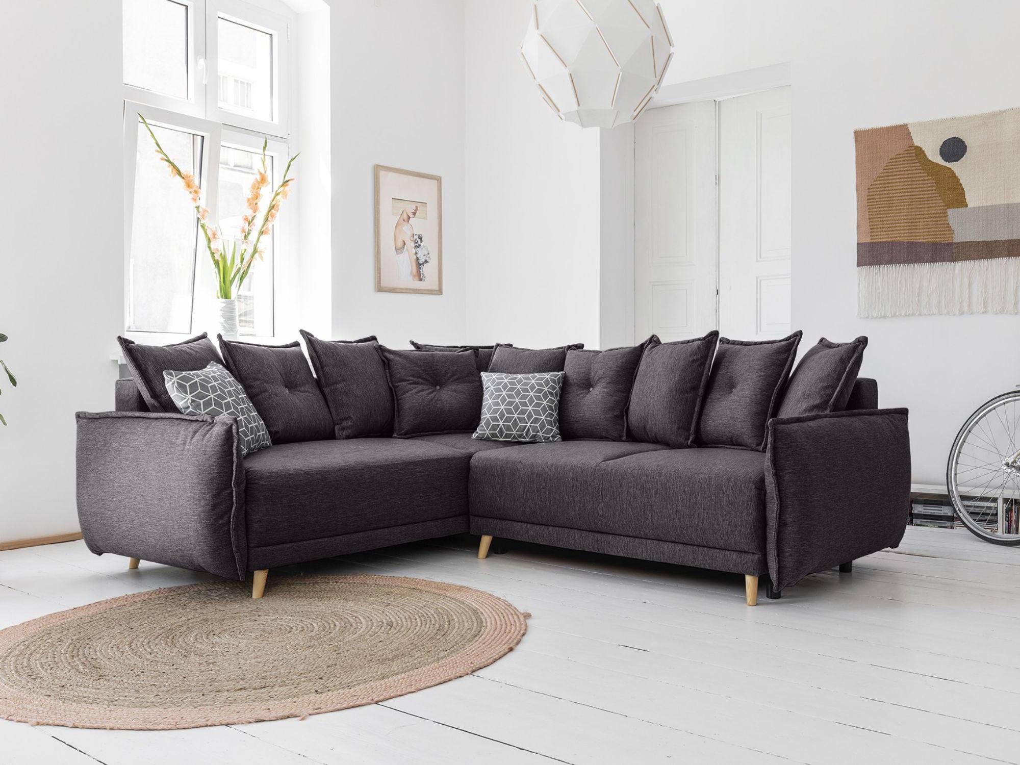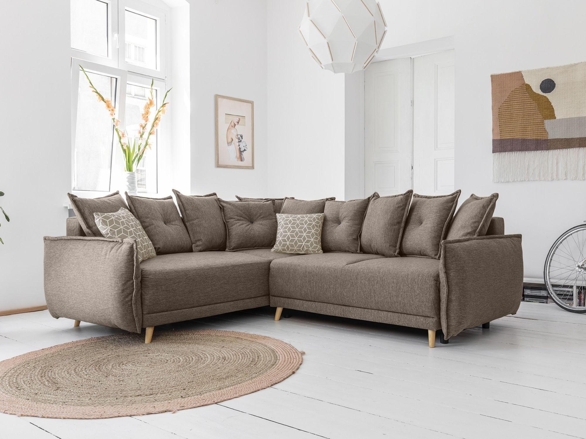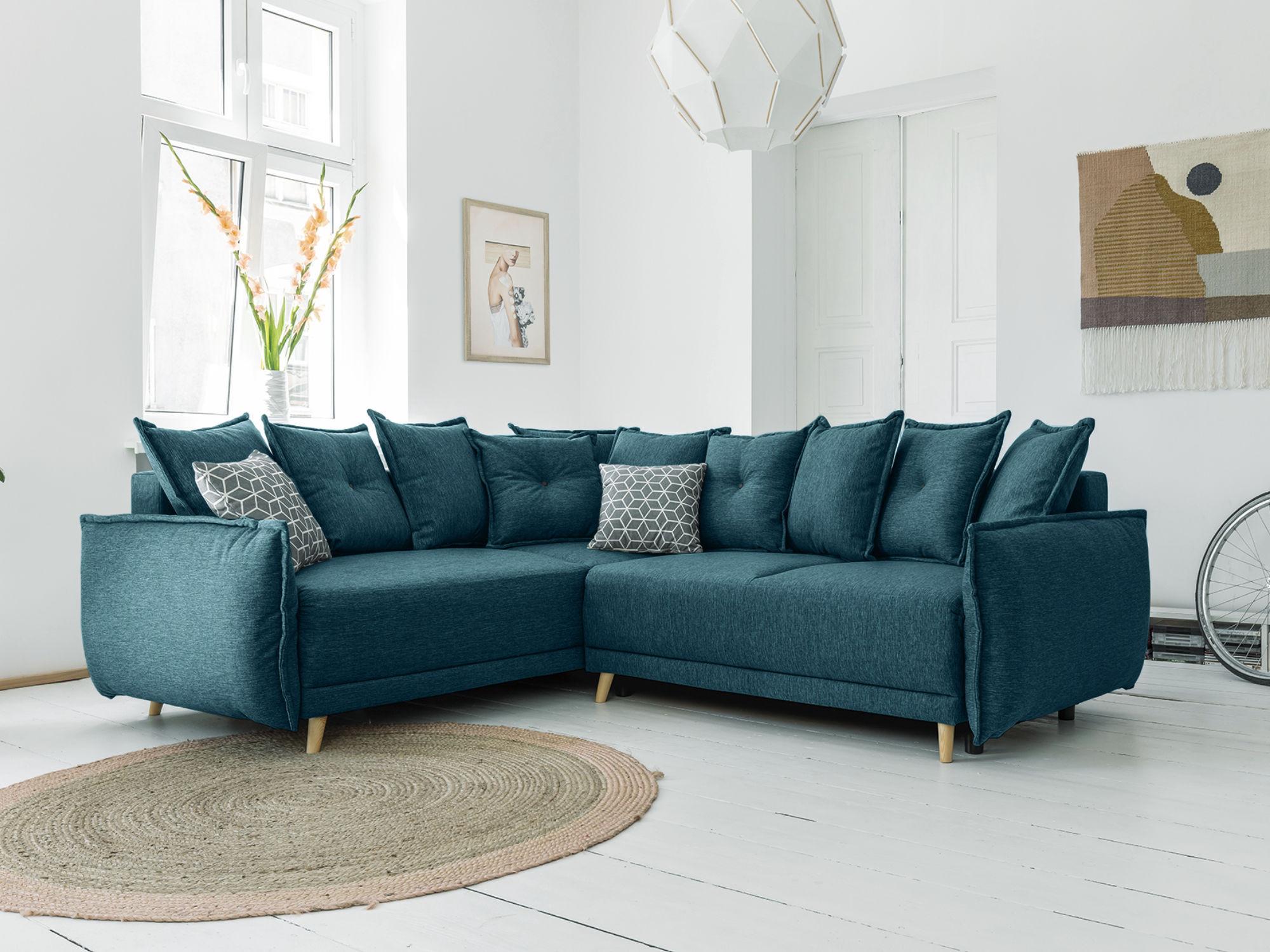 Lena - canapé d'angle convertible - avec coffre - style scandinave - 5 places - gauche