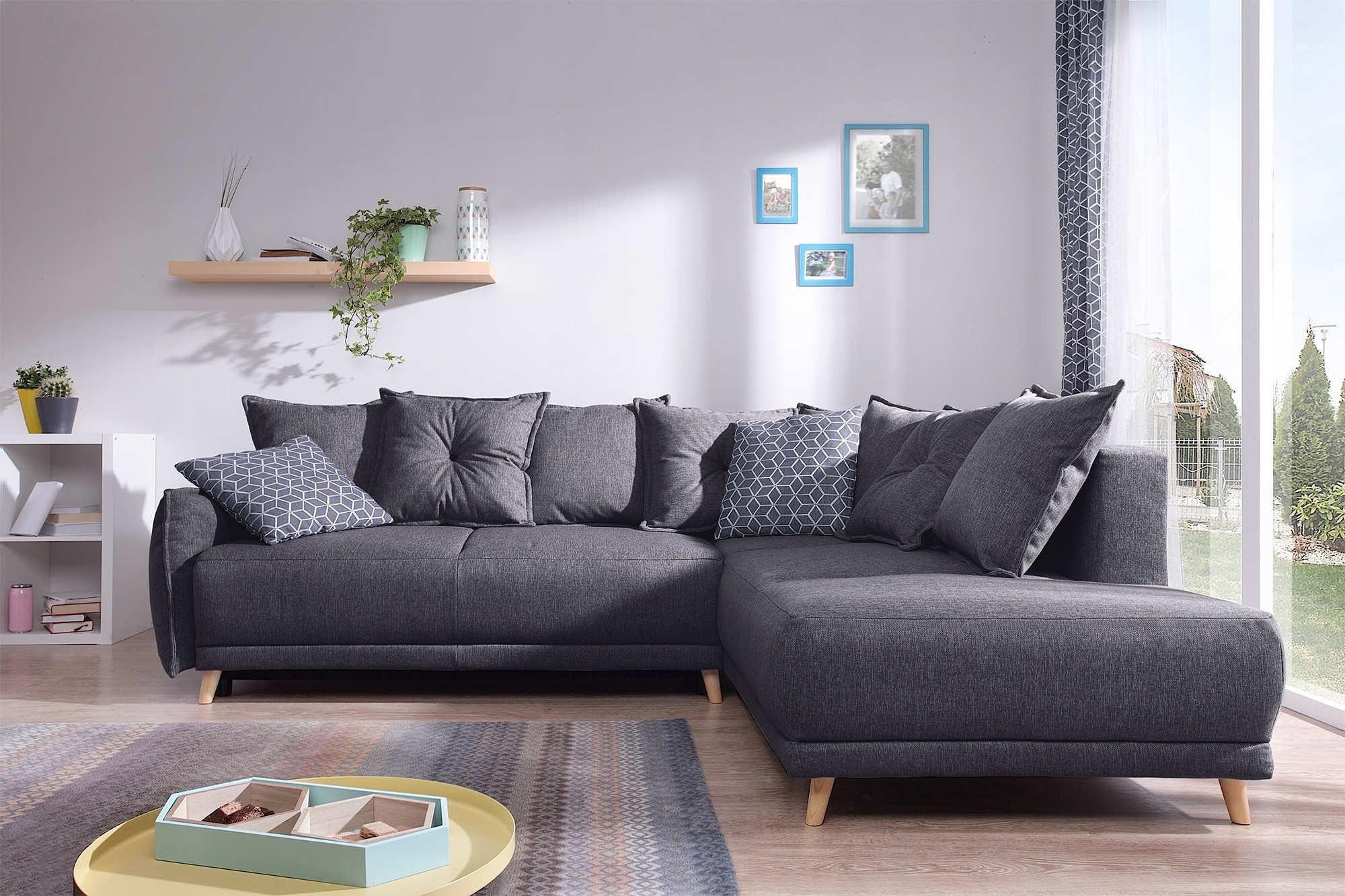 Lena - canapé d'angle droit convertible - 5 places - gris foncé - style scandinave - gris foncé