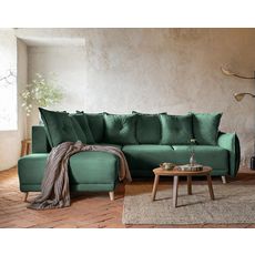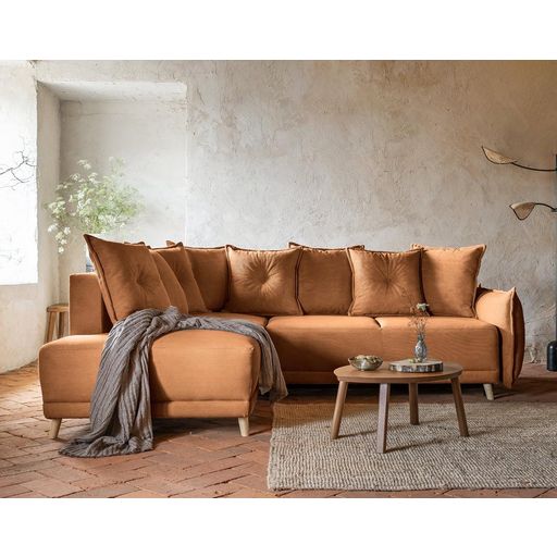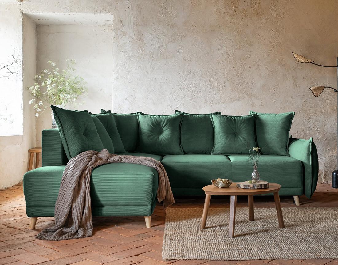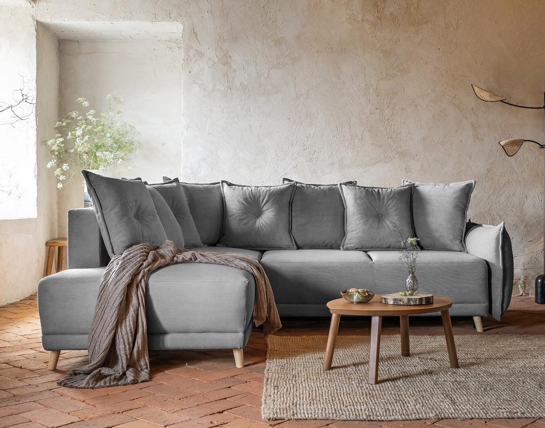 Lena - canapé d'angle gauche 5 places - convertible avec coffre - en velours côtelé