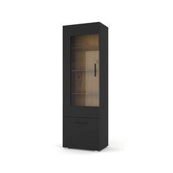 Leolio - vitrine - noir et effet bois - 60x190 cm