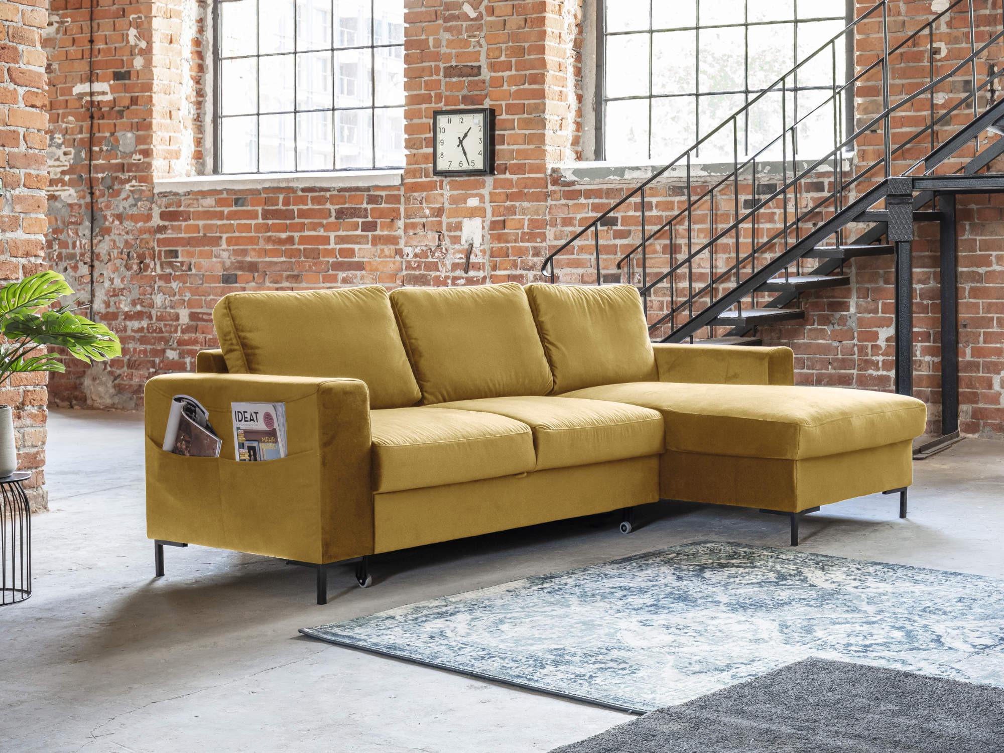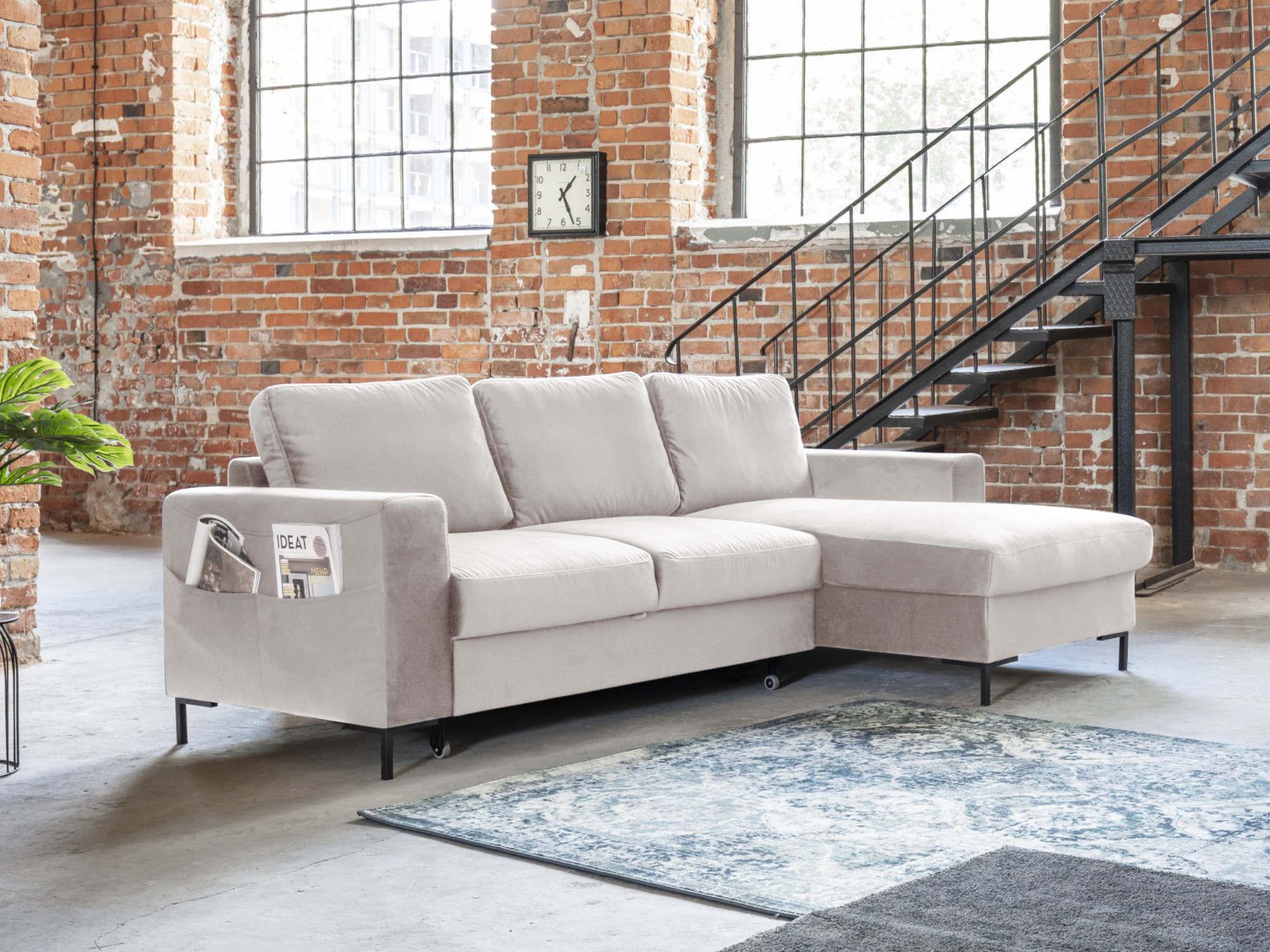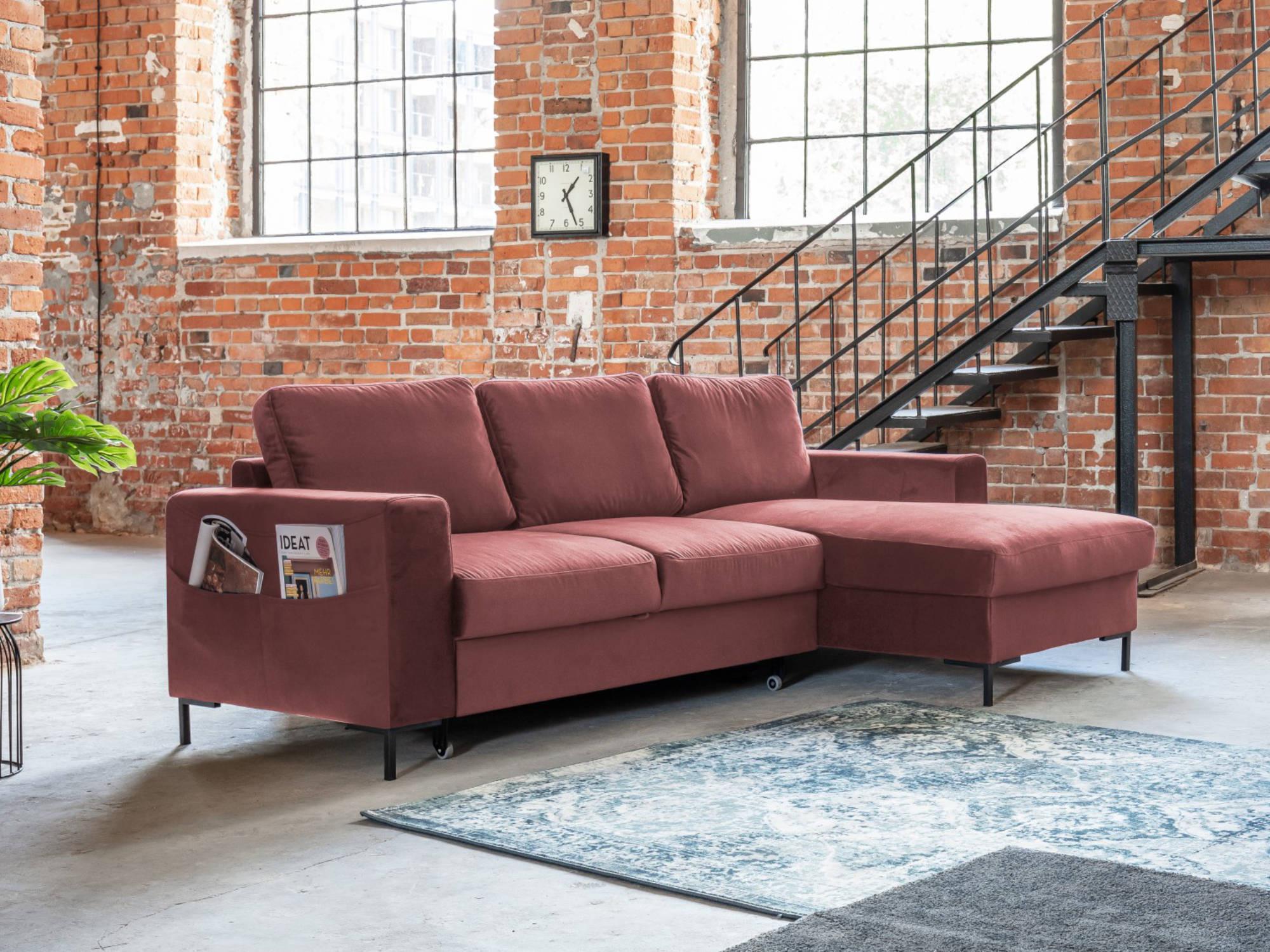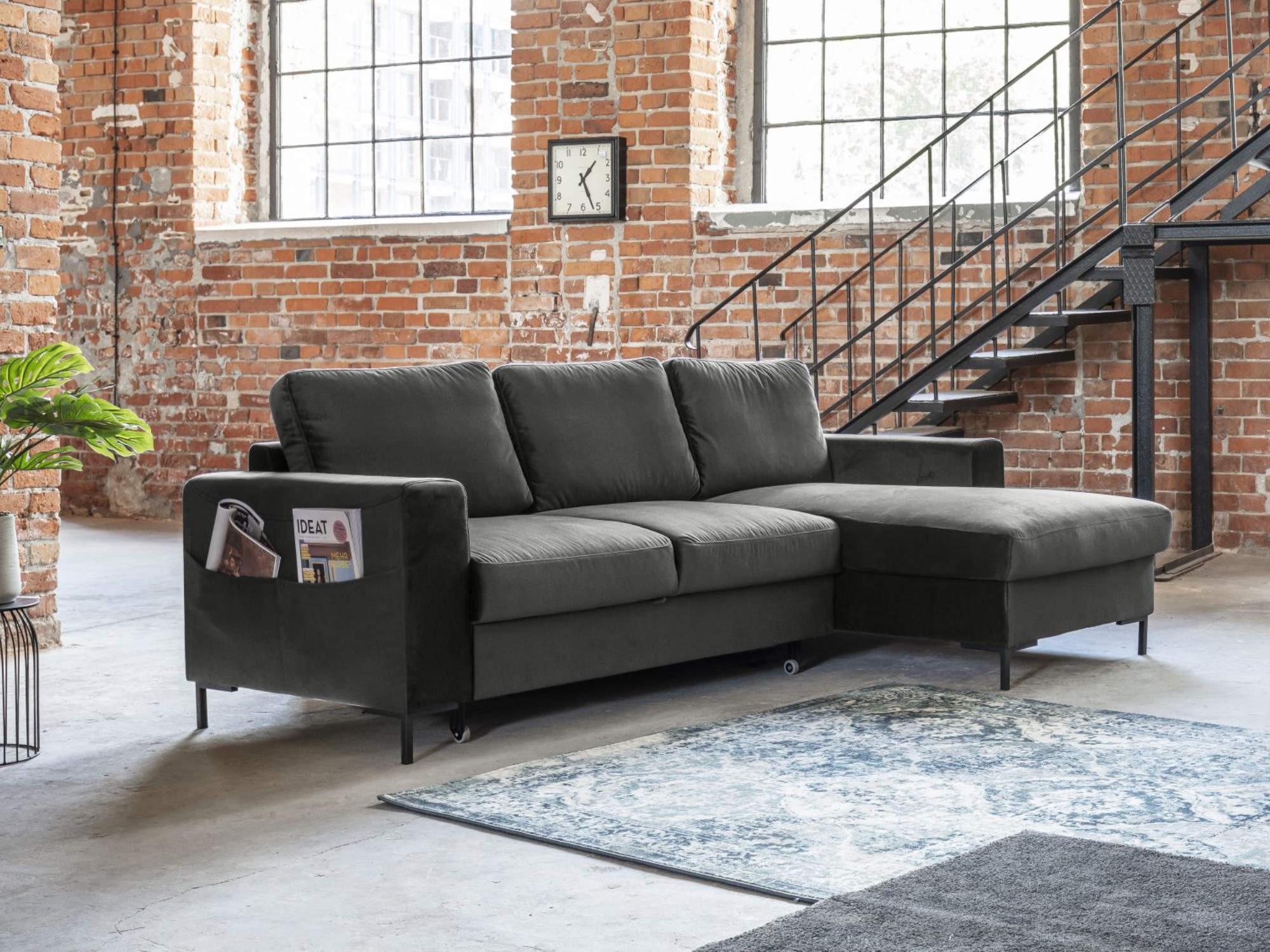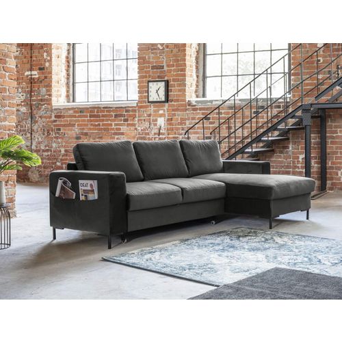 Lilly - canapé d'angle droit - 4 places - convertible avec coffre - en velours