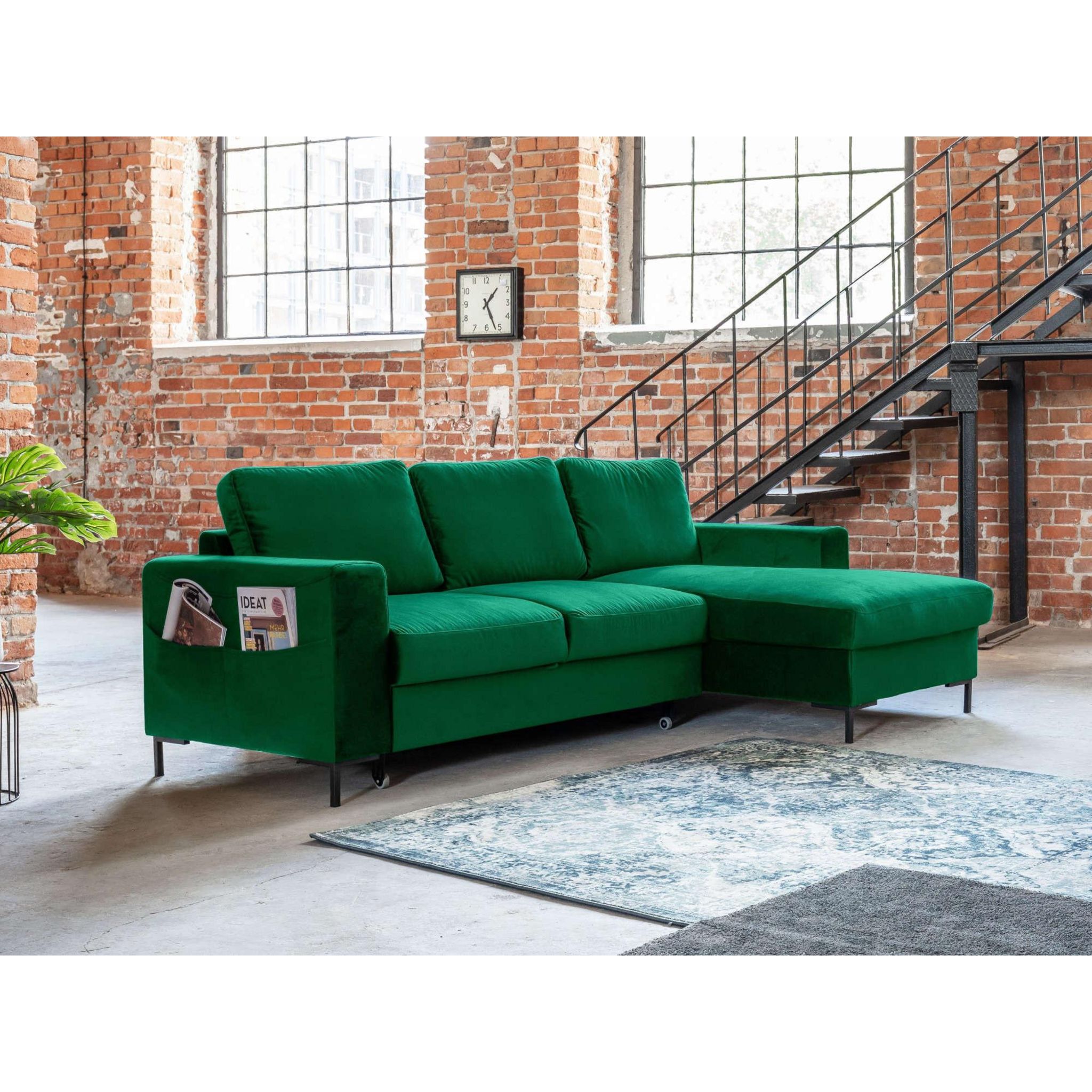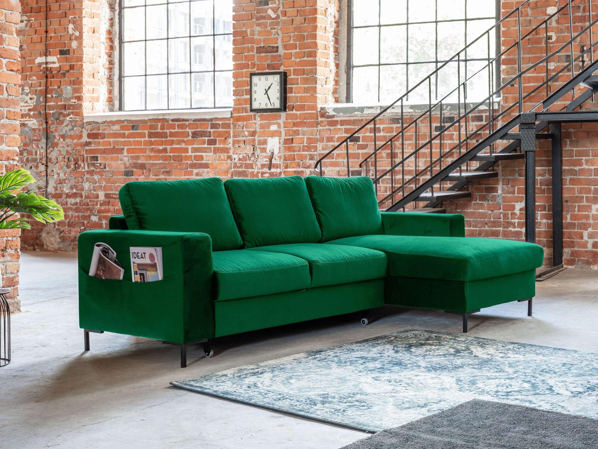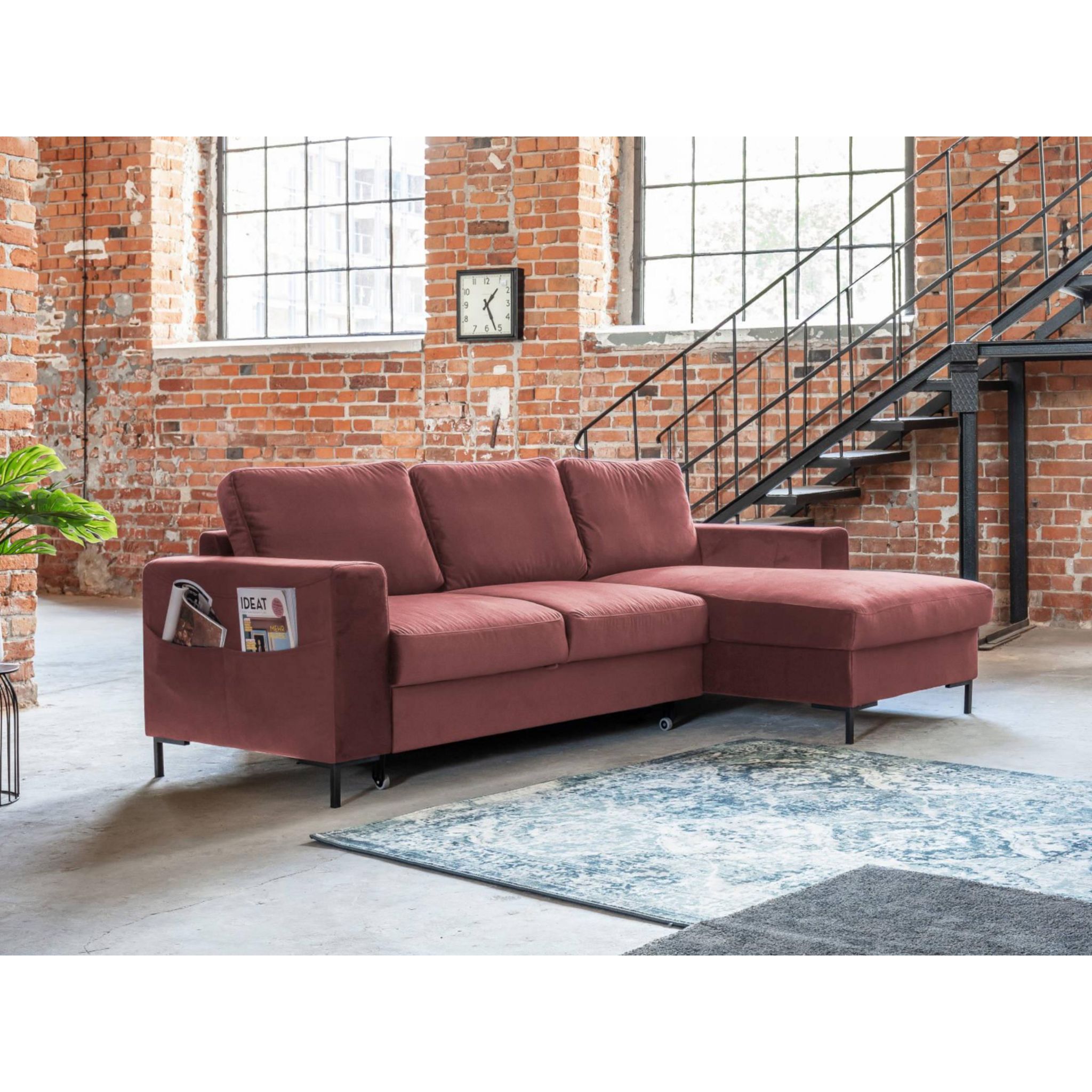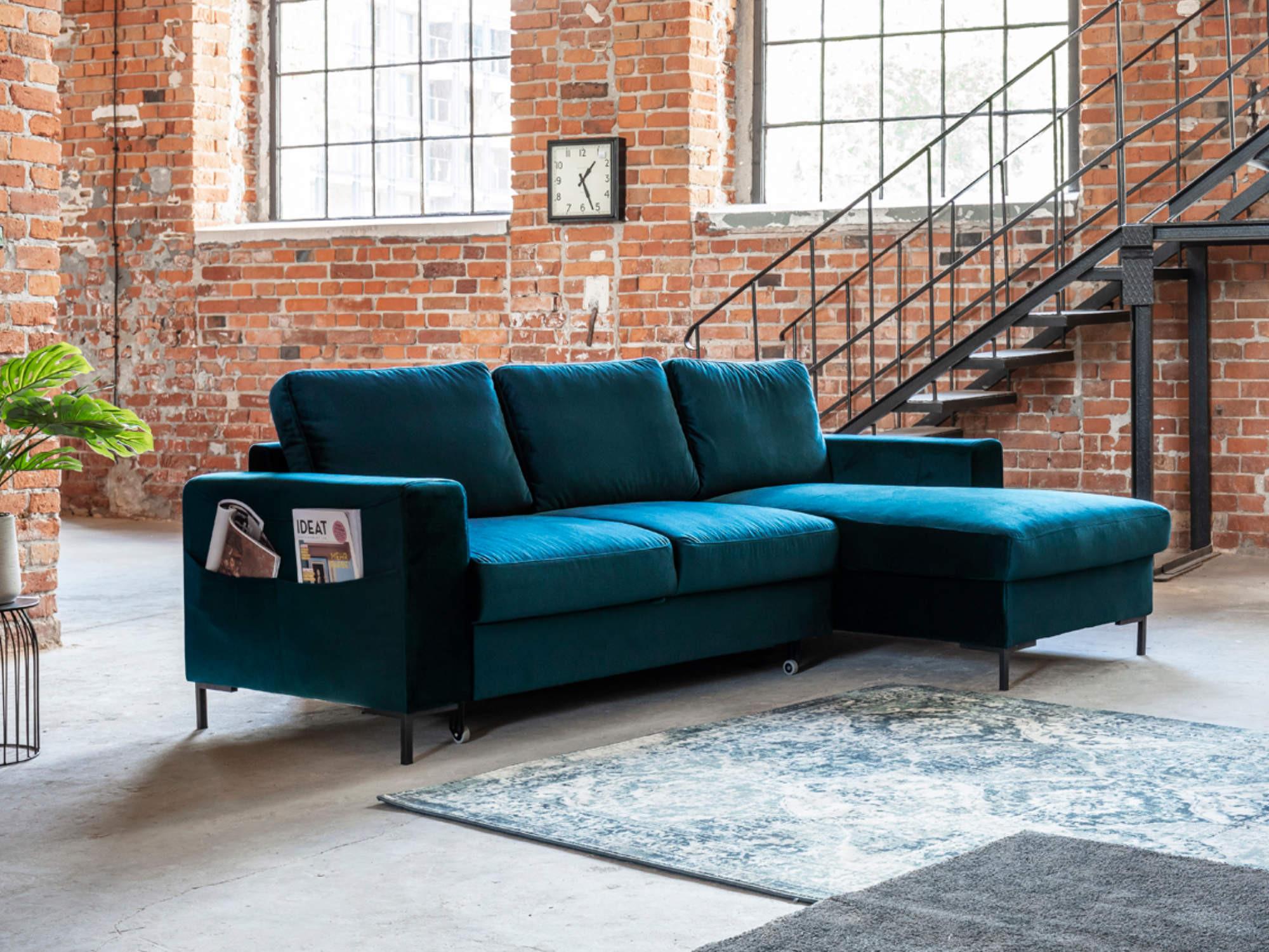 Lilly - canapé d'angle droit - 4 places - convertible avec coffre - en velours