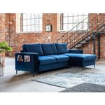 Plusieurs fonctions sont disponibles afin que votre canapé d'angle Lilly ne soit pas uniquement beau mais aussi pratique ! Pour accueillir vos proches occasionnellement ou encore profiter pleinement de votre canapé le dimanche, la fonction convertible est disponible en quelques secondes. Il vous suffit de tirer le tiroir qui se situe sous l'assise et de remonter la partie à l'aide de la sangle. Sous la méridienne, se trouve un coffre de rangement. Vous pouvez y ajouter des plaids, des coussins ou autres grâce à son espace suffisant pour cela. Petit plus, la poche dans l'accoudoir est pratique afin de ne pas perdre ses télécommandes.