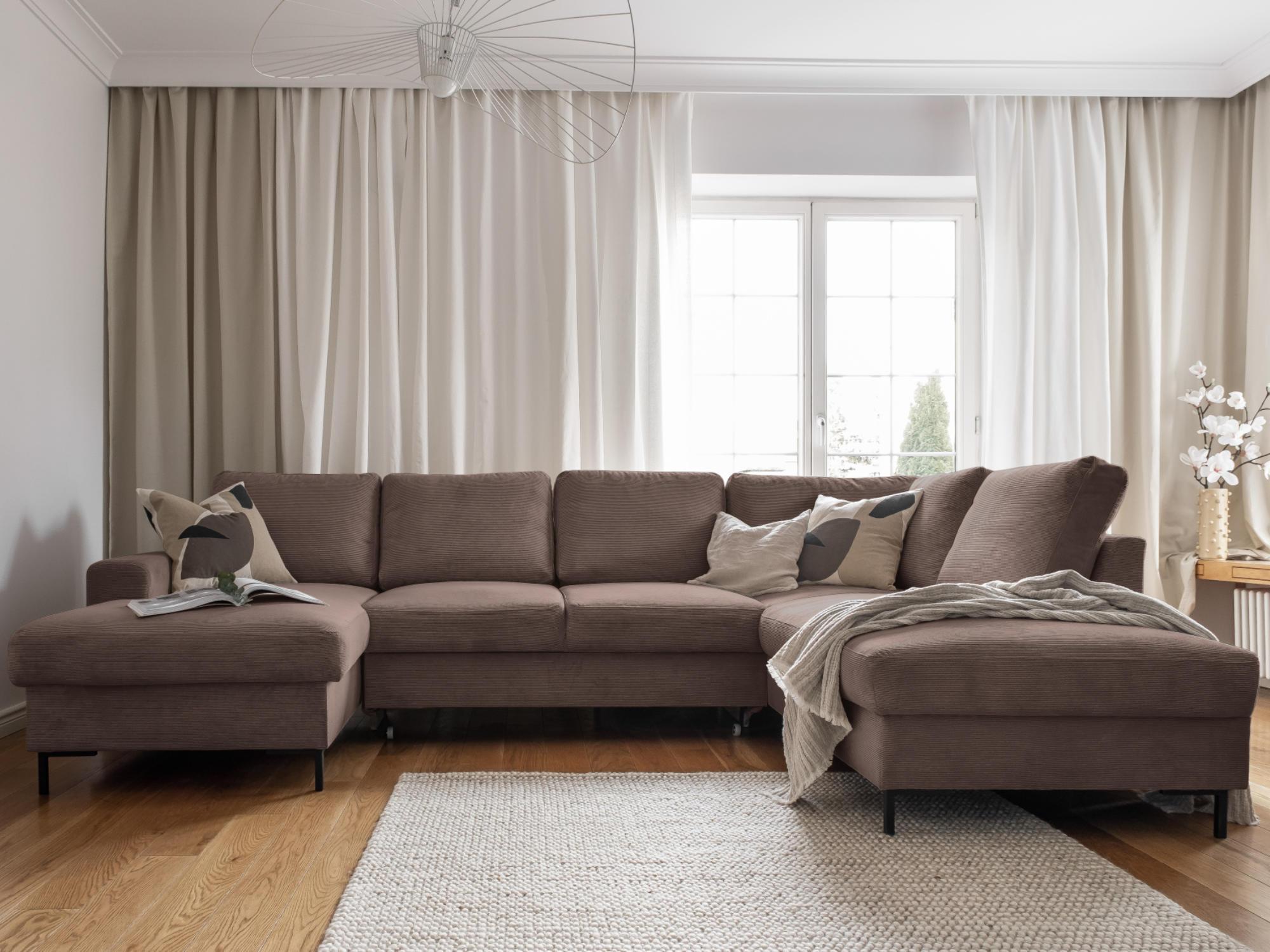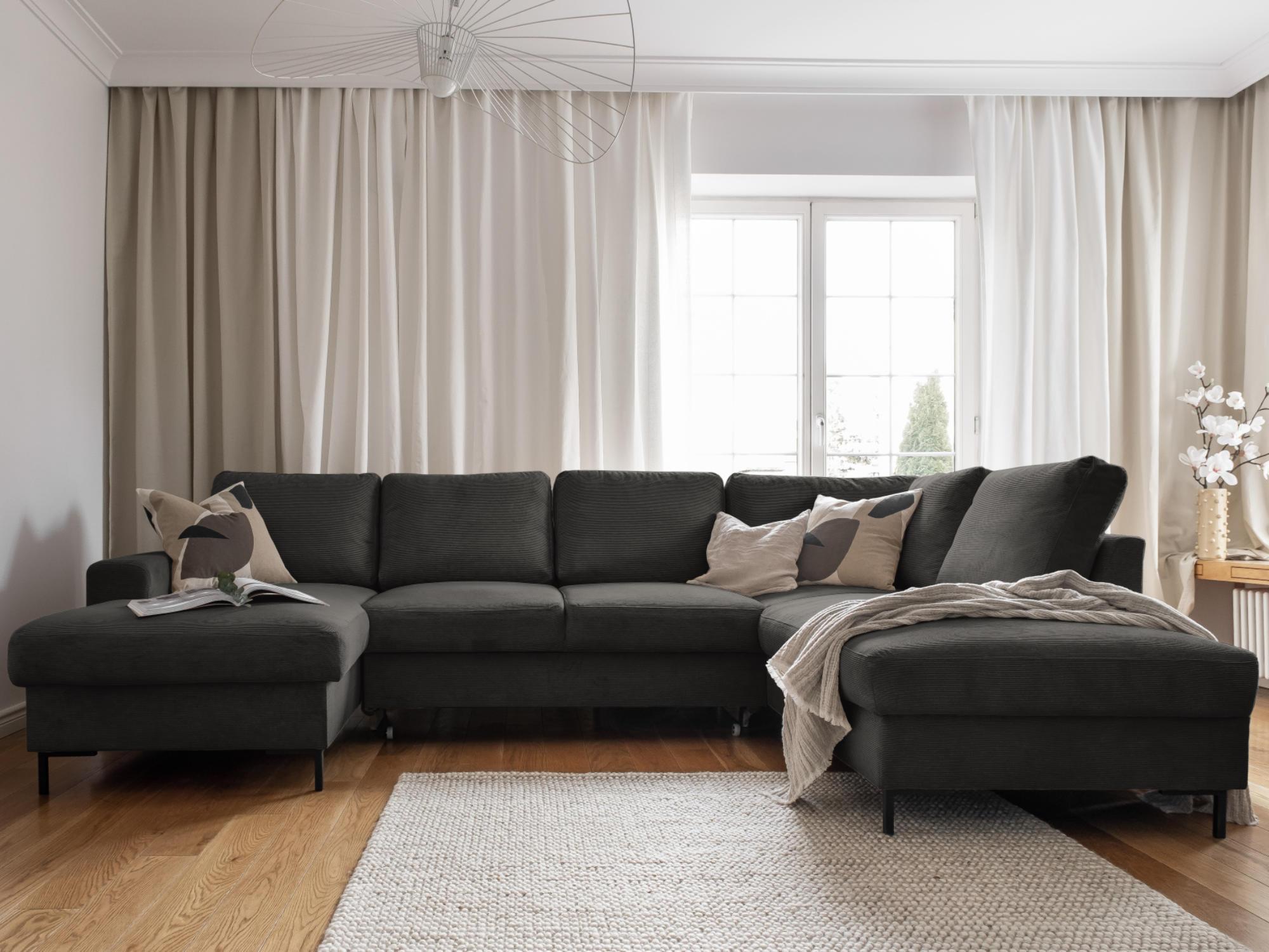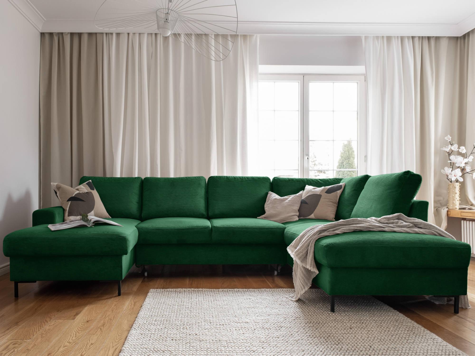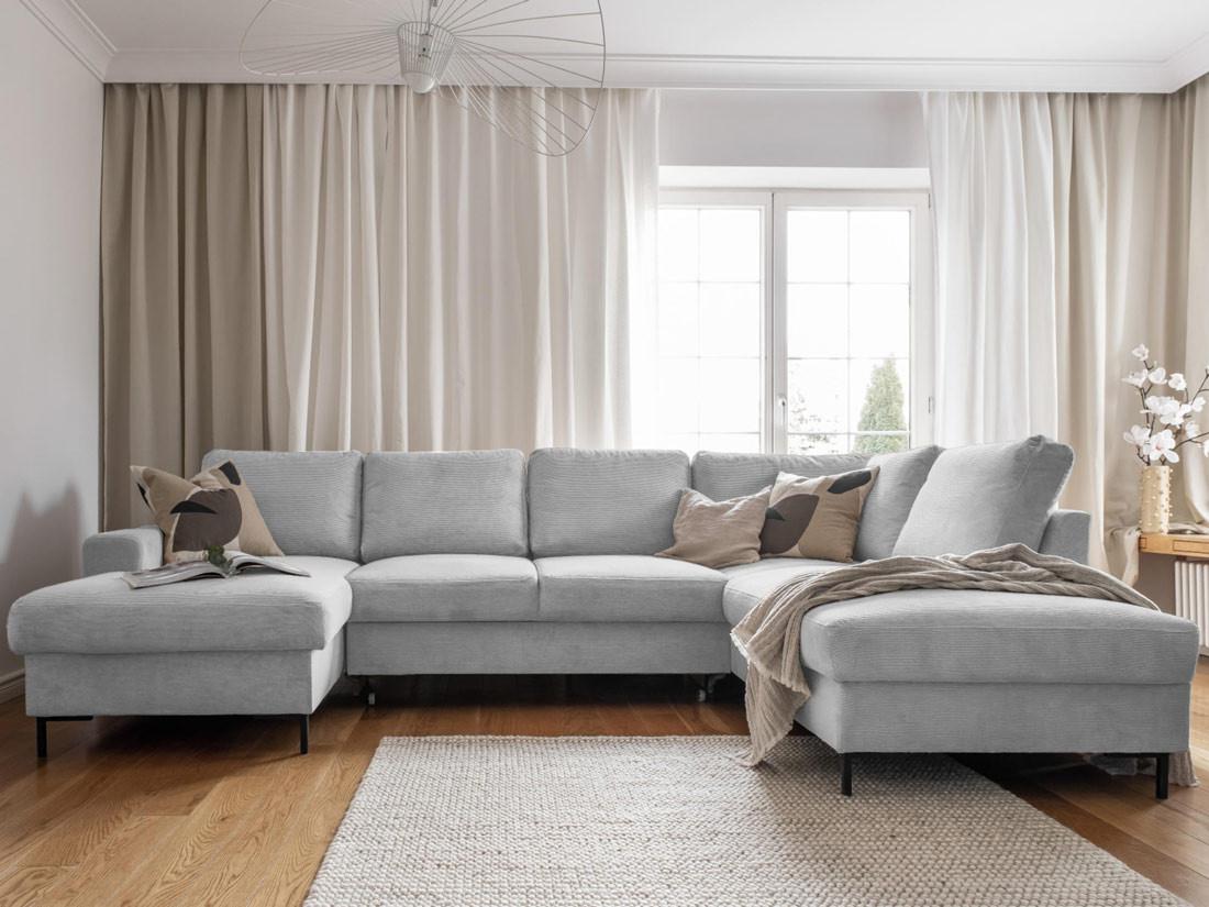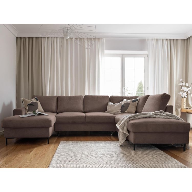 Lilly - canapé panoramique d'angle droit - 7 places - convertible avec coffre - en velours côtelé