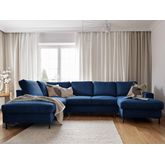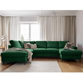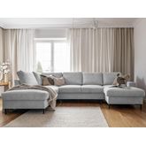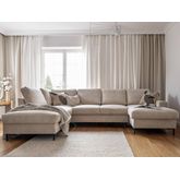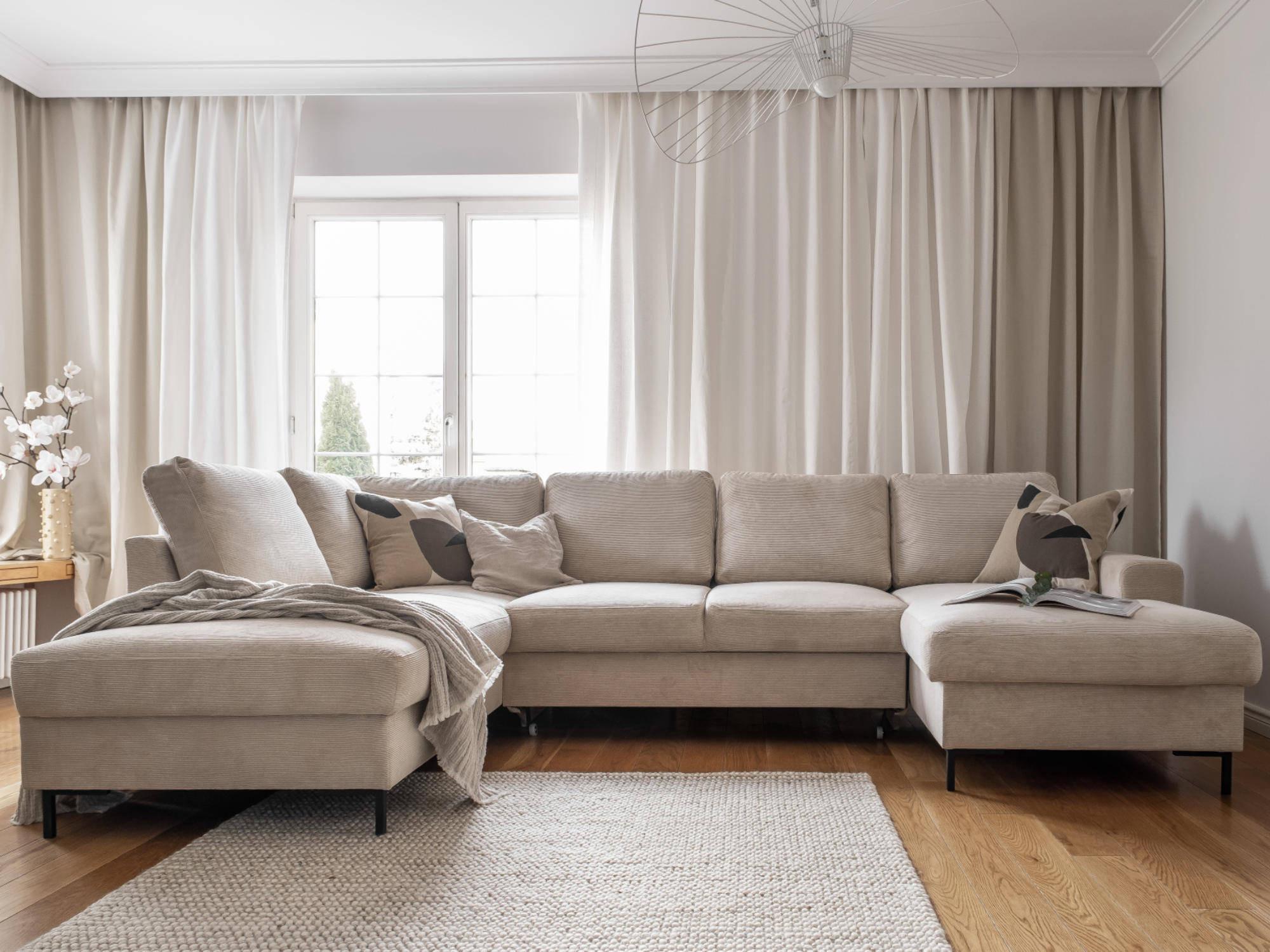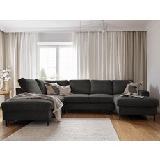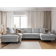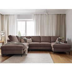 Plusieurs fonctions sont disponibles afin que votre canapé d'angle panoramique Lilly ne soit pas uniquement beau mais aussi pratique ! Pour accueillir vos proches occasionnellement ou encore profiter pleinement de votre canapé le dimanche, la fonction convertible est disponible en quelques secondes. Il vous suffit de tirer le tiroir qui se situe sous l'assise et de remonter la partie à l'aide de la sangle. Sous la méridienne, se trouve un coffre de rangement. Vous pouvez y ajouter des plaids, des coussins ou autres grâce à son espace suffisant pour cela. Petit plus, la poche dans l'accoudoir est pratique afin de ne pas perdre ses télécommandes.