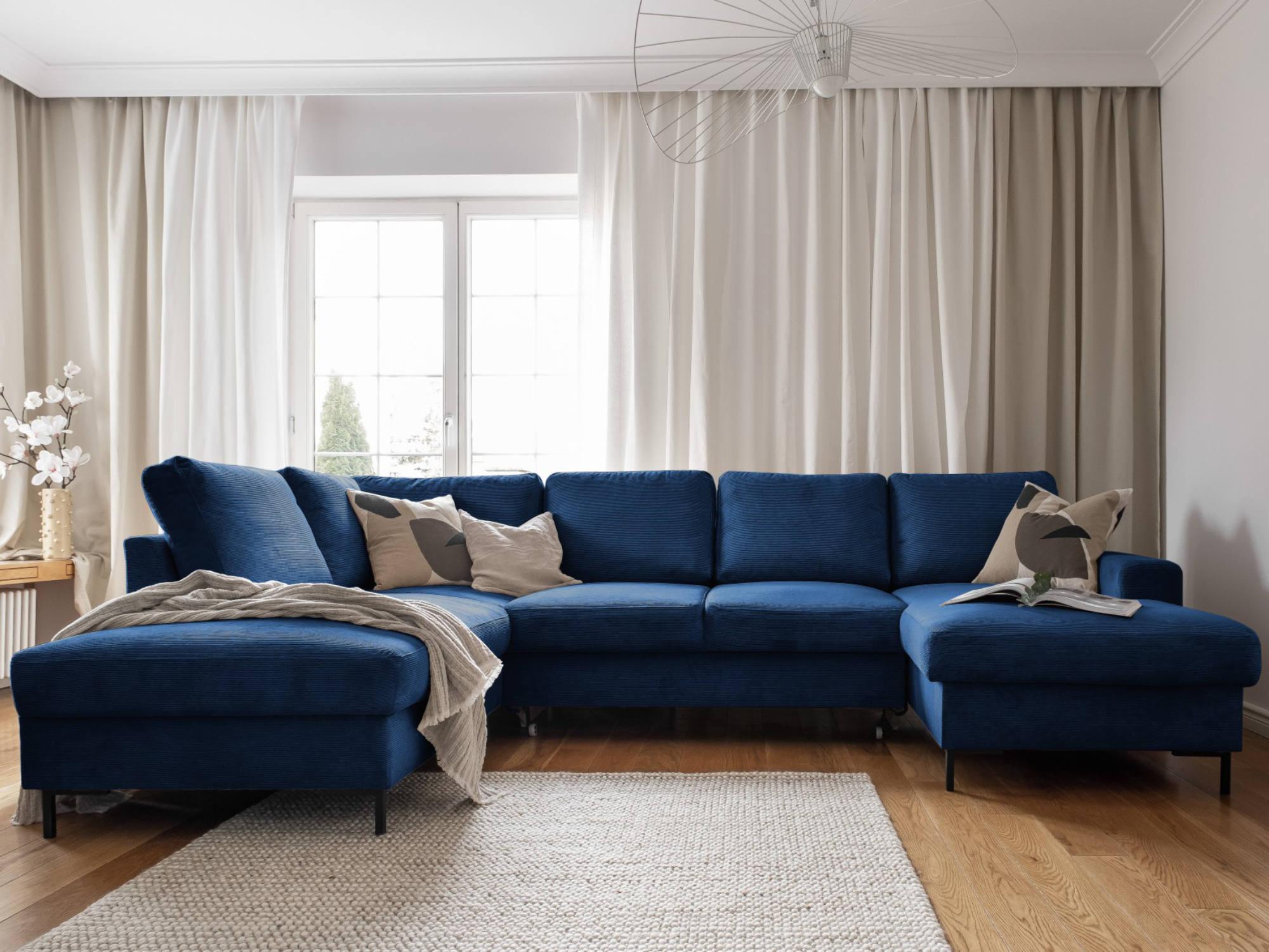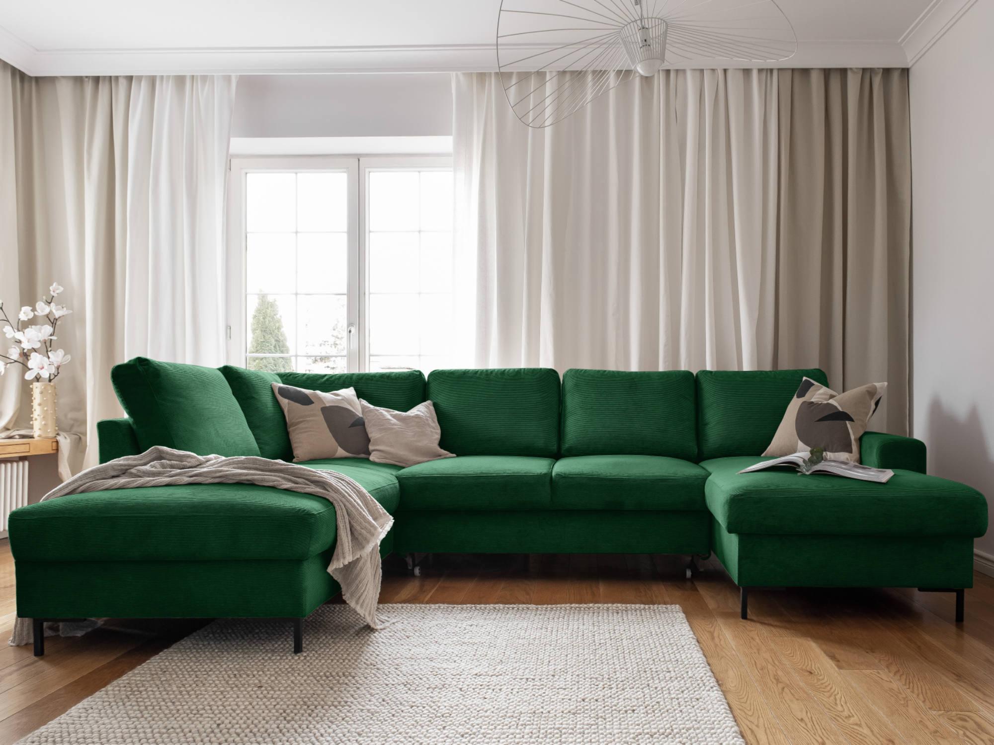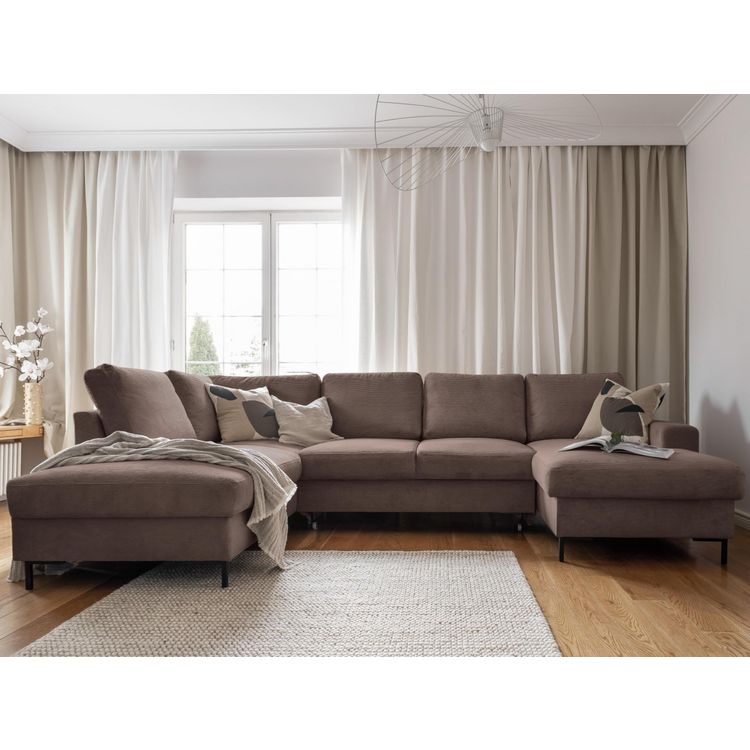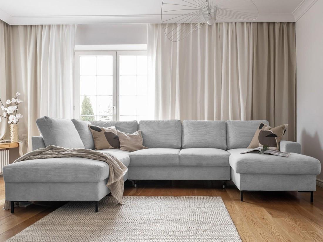 Lilly - canapé panoramique d'angle gauche - 7 places - convertible avec coffre - en velours côtelé