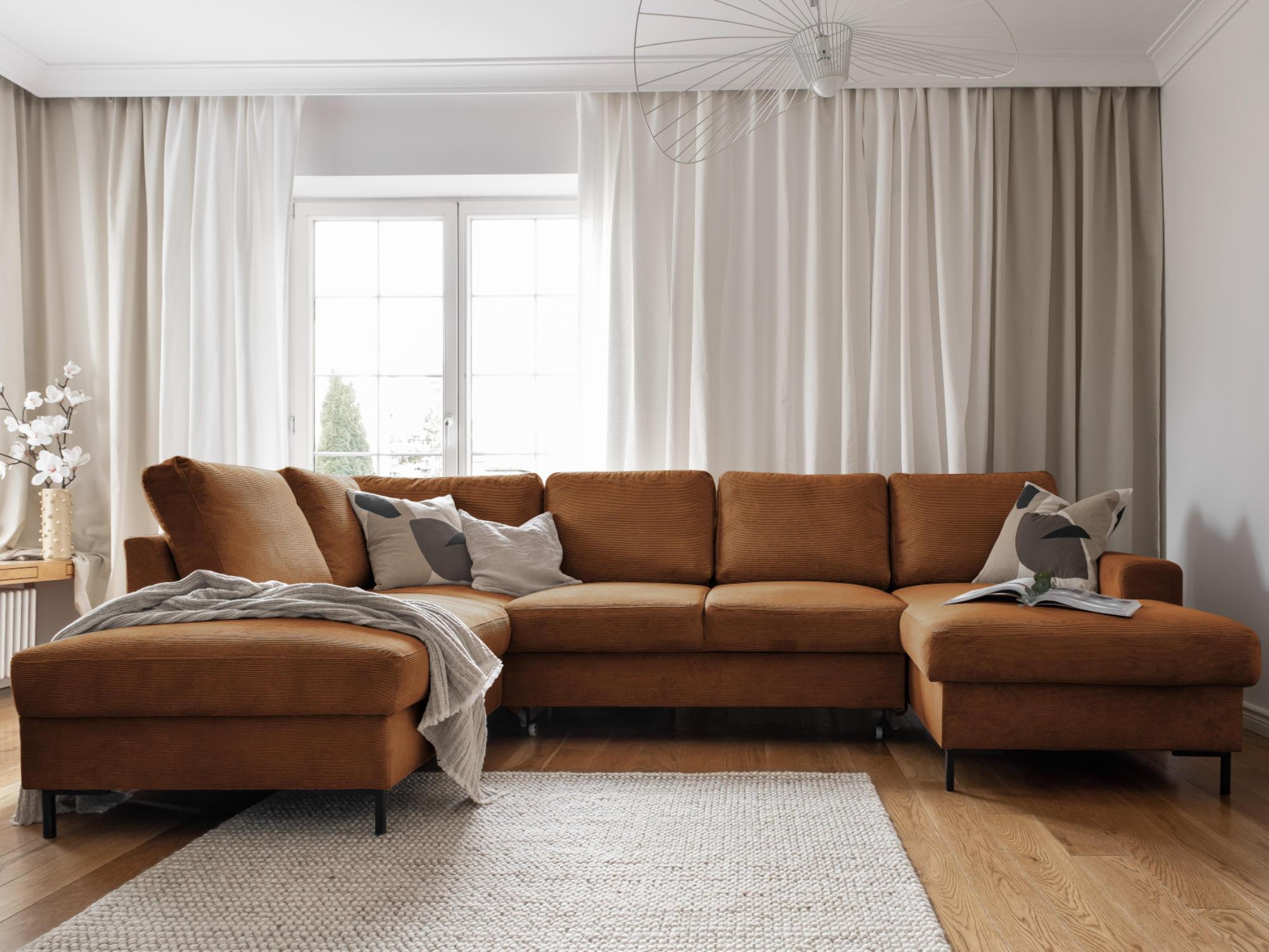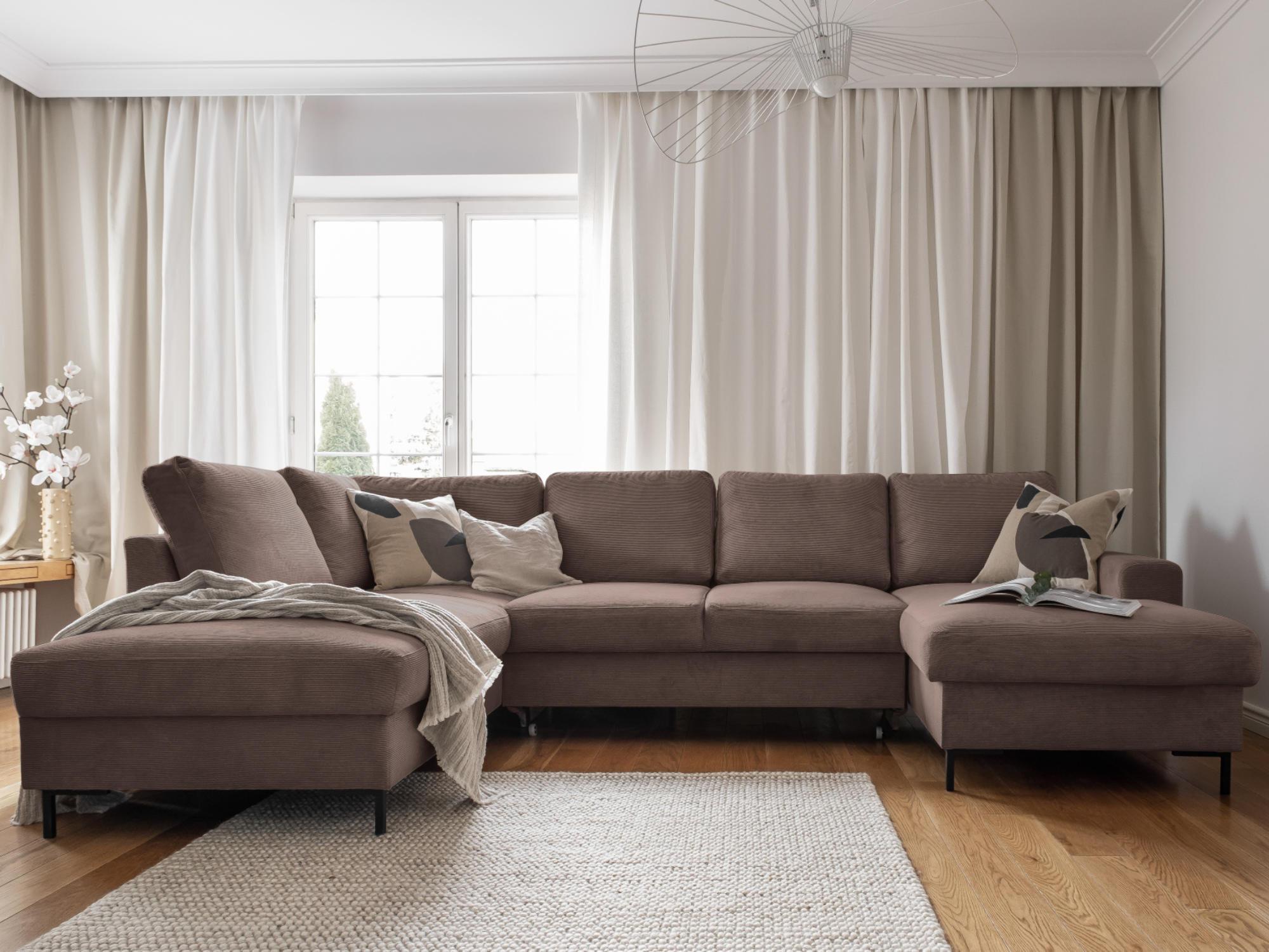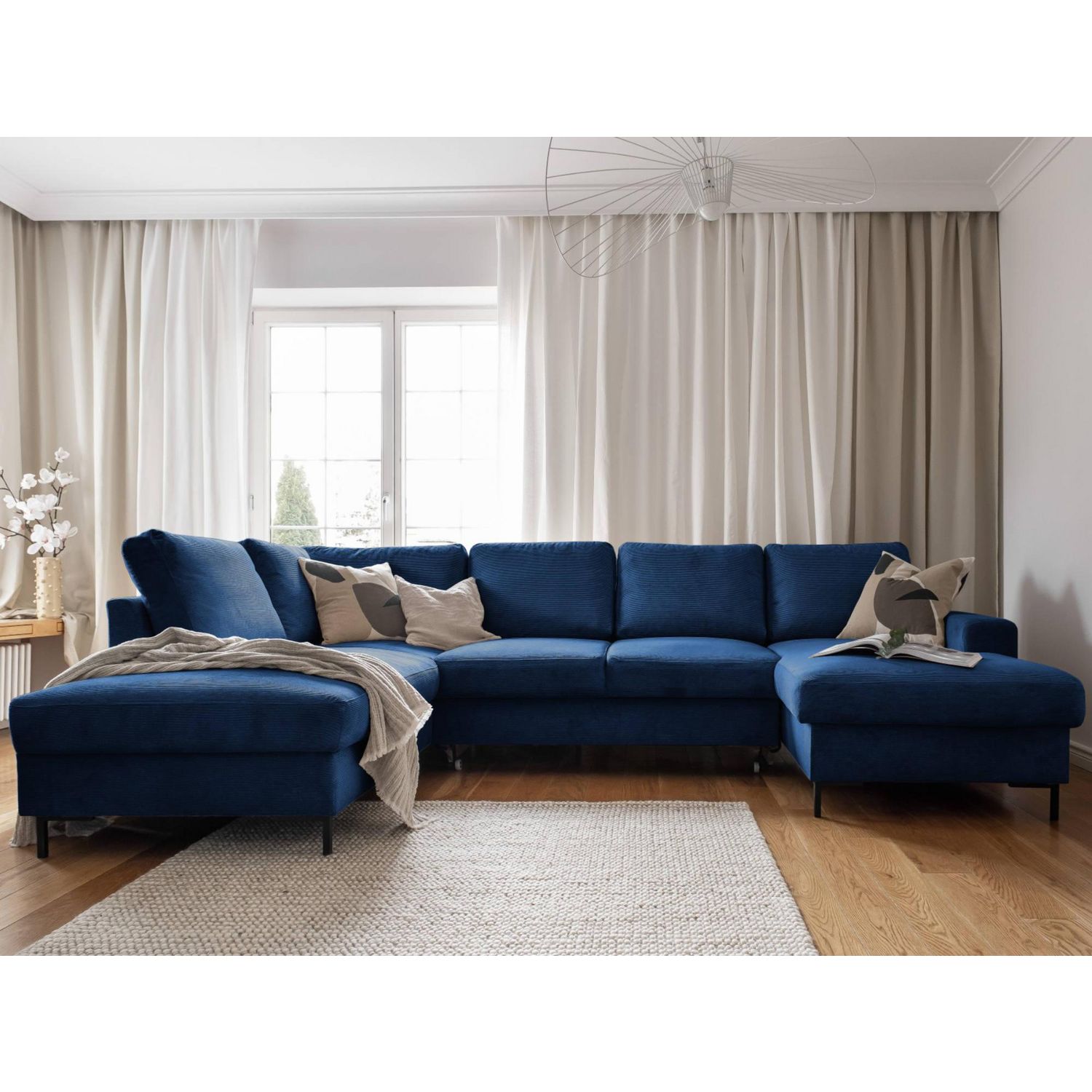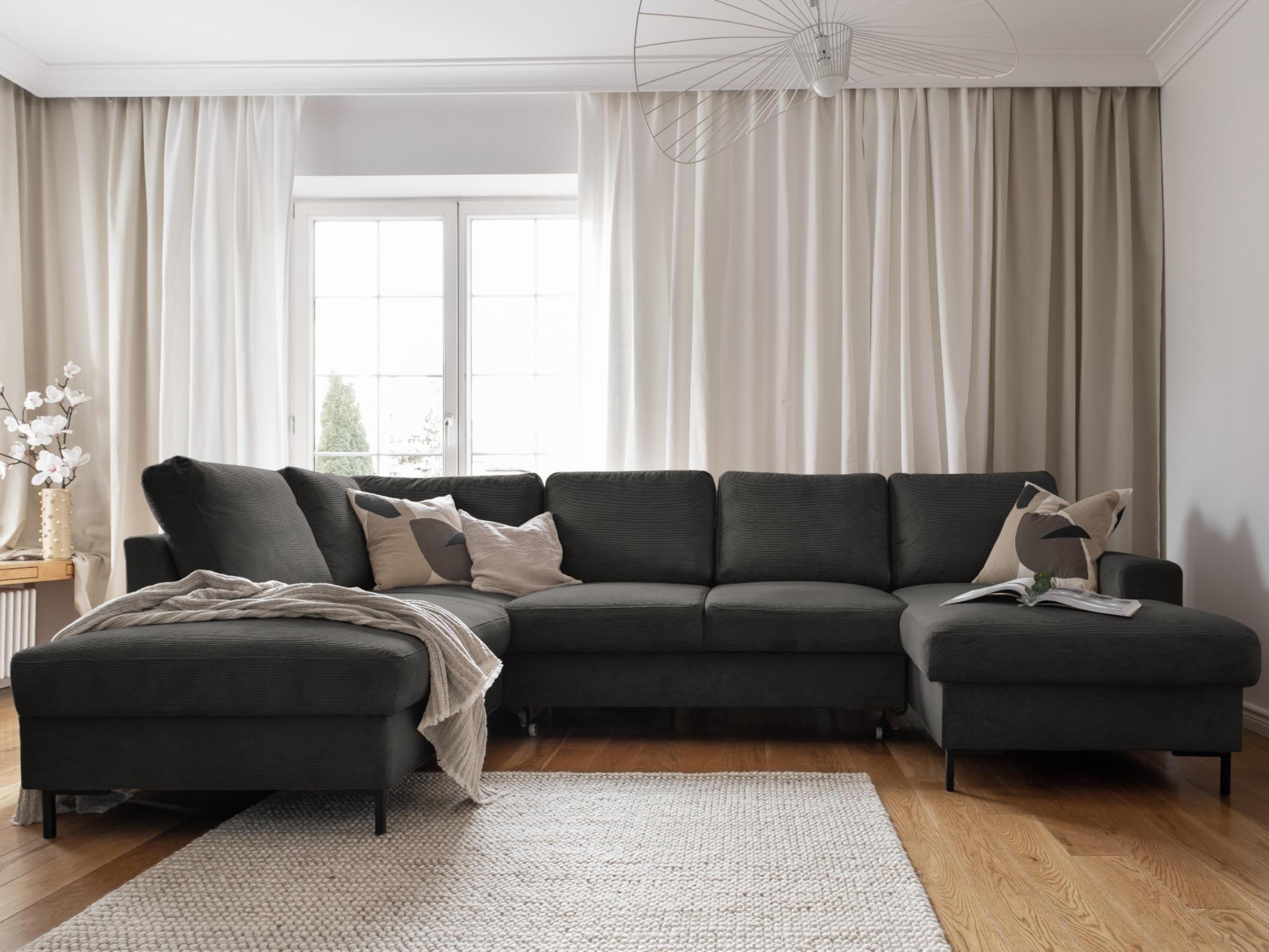 Lilly - canapé panoramique d'angle gauche - 7 places - convertible avec coffre - en velours côtelé
