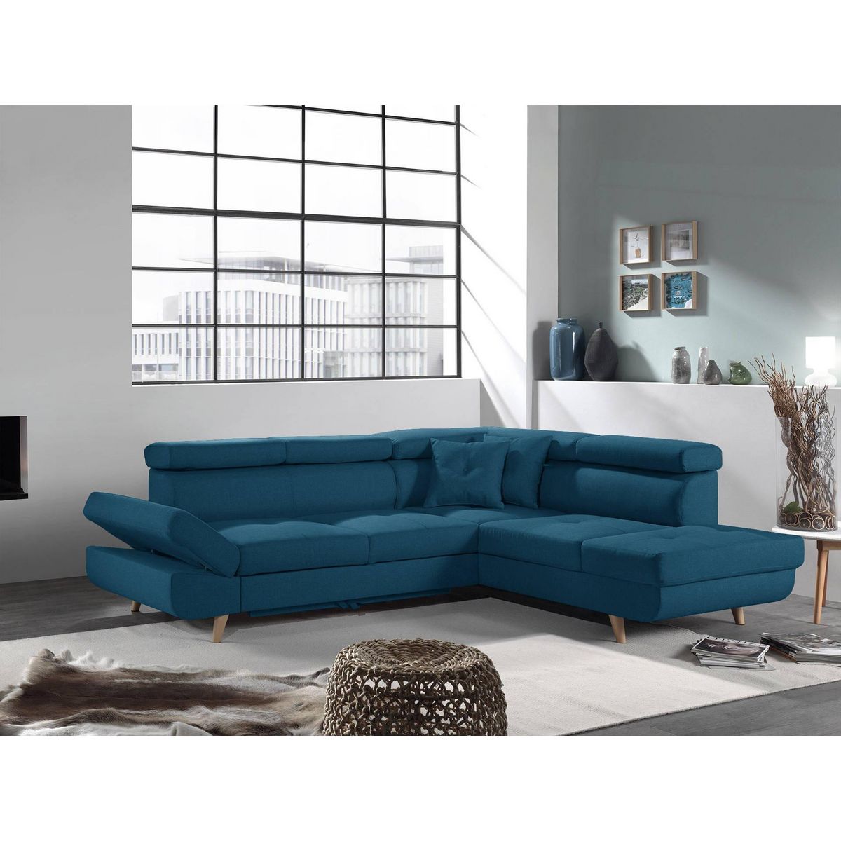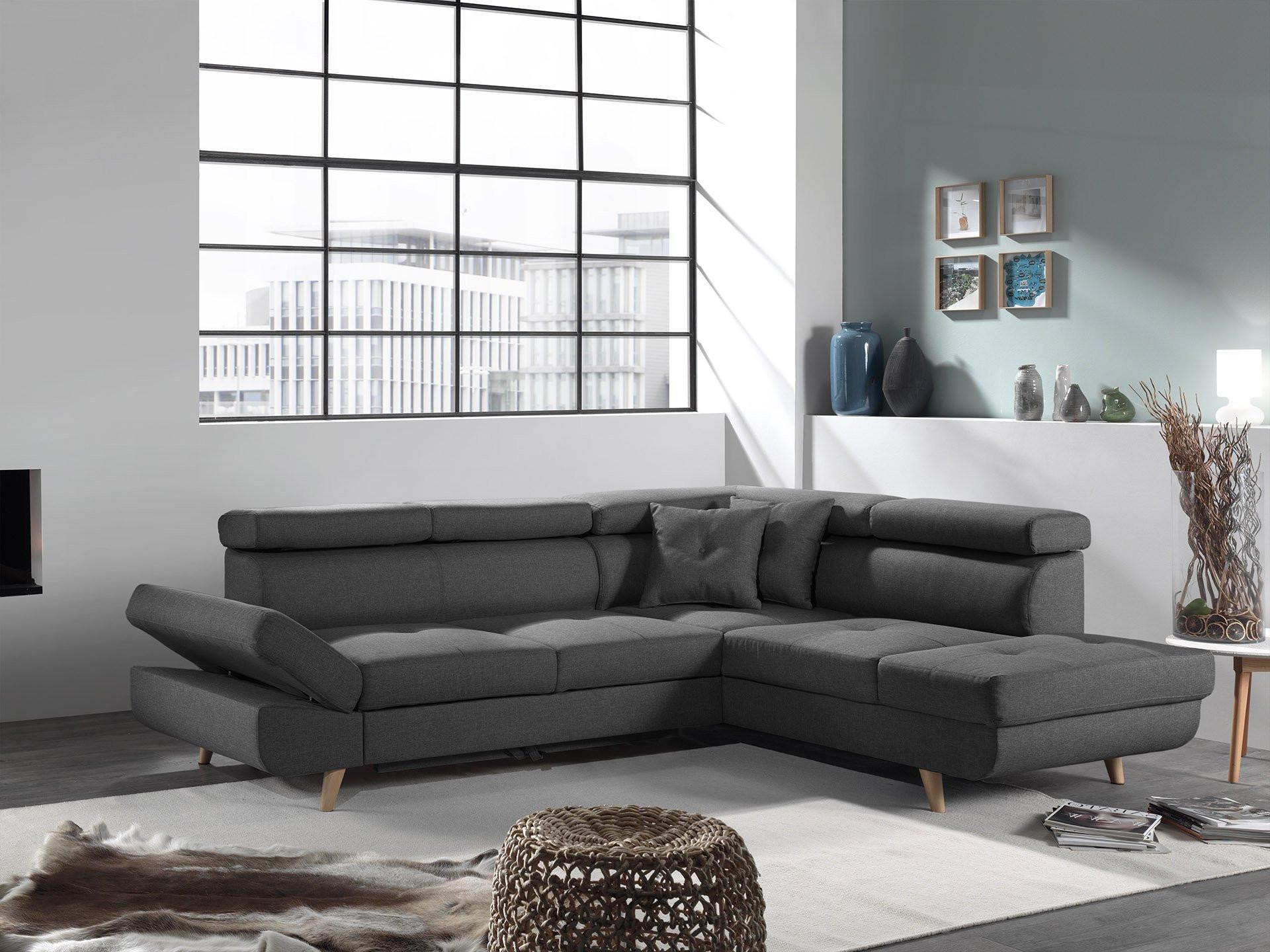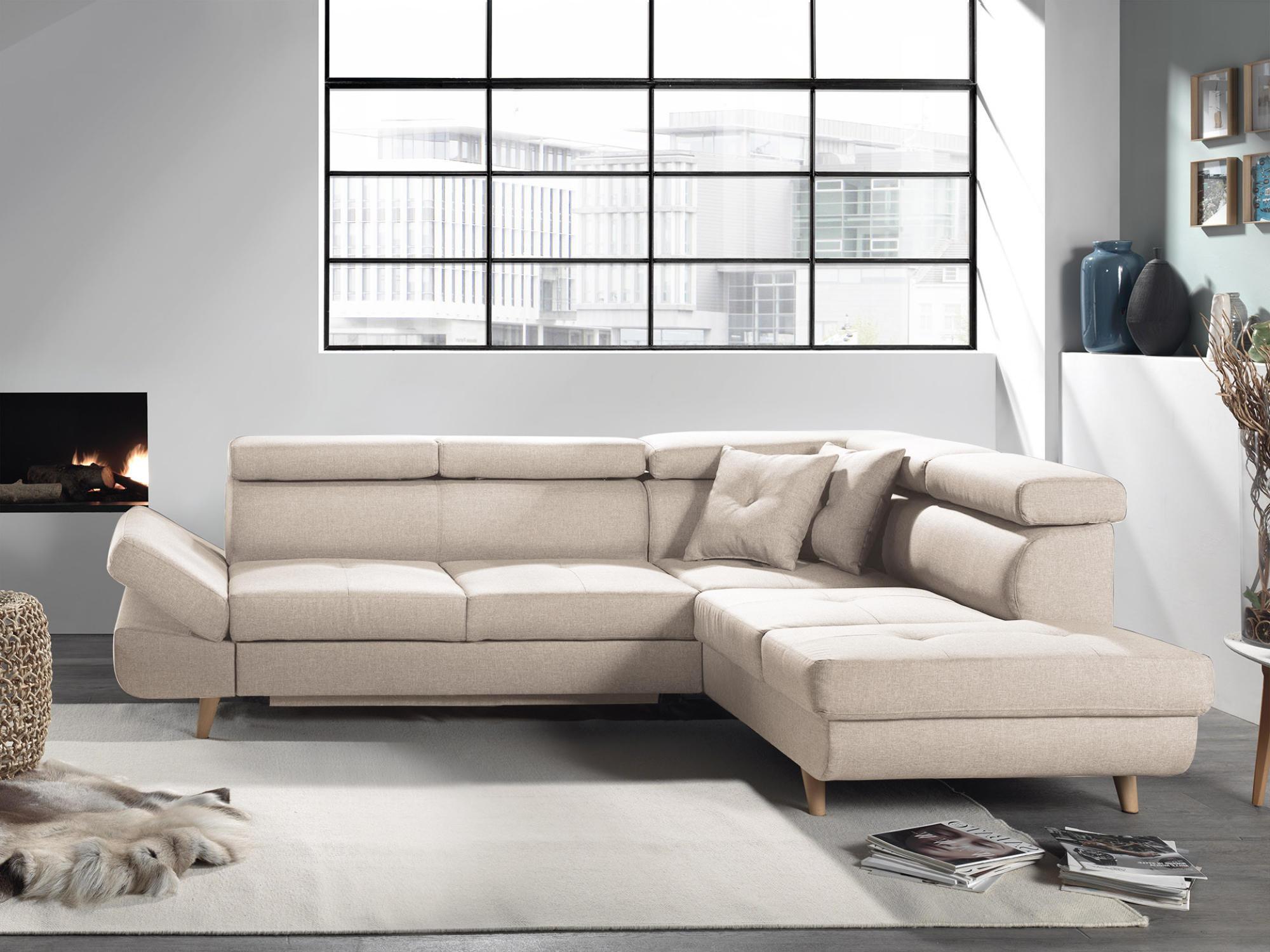 LINEA : canapé d'angle droit convertible scandinave avec appuis-têtes réglables et accoudoir ajustable