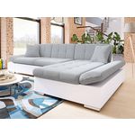 Le canapé d'angle Livio est proposé dans un style contemporain avec un revêtement bi matière : simili et tissu. Il dispose d'accoudoirs relevables et ajustables à votre guise afin de moduler votre canapé et votre confort. Ses assises et ses dossiers sont capitonnés.