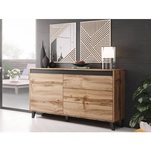 Lord - buffet bas - effet bois et noir - 3 tiroirs et 1 porte - 138 cm