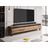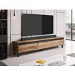 Le meuble TV Lord présente un style particulier notamment grâce à la bande sombre uniforme située juste au-dessus des tiroirs. Par ailleurs, les pieds des meubles sont conservés dans un ton cohérent avec la couleur miel du bois.