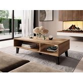 La table basse Lord, avec ses deux niches ouvertes sans portes, a la particularité d'être à la fois un lieu de rangement très pratique – pour livres, magazines, journaux ou autres accessoires – et un meuble avec un vrai accent décoratif pour votre salon. Ses quatre pieds, épais et légèrement inclinés offrent une véritable stabilité à la table basse.