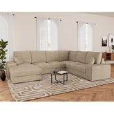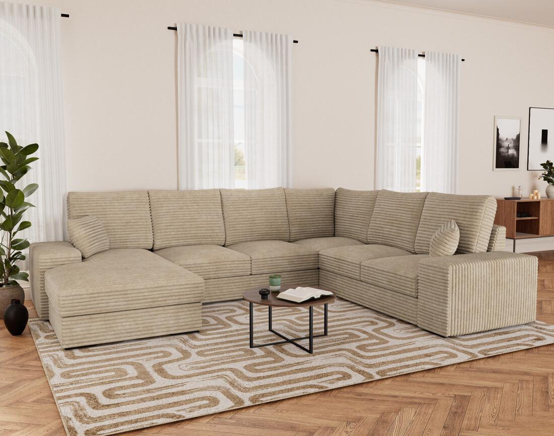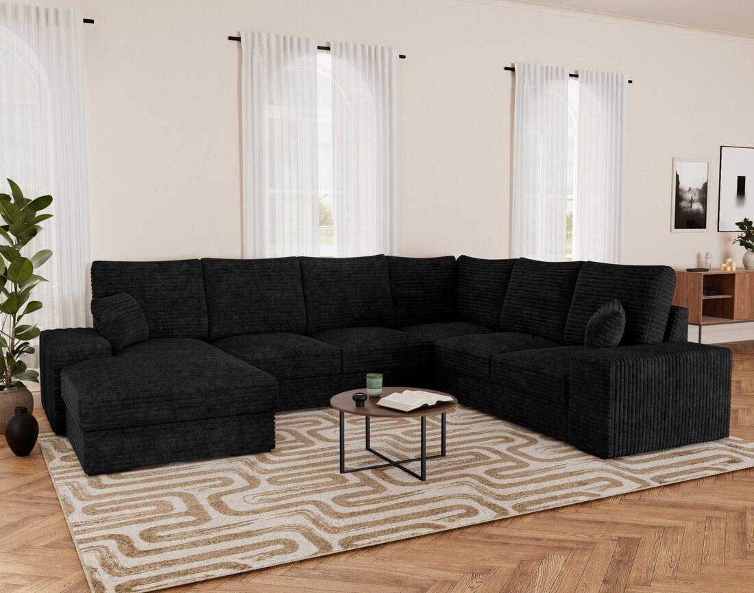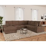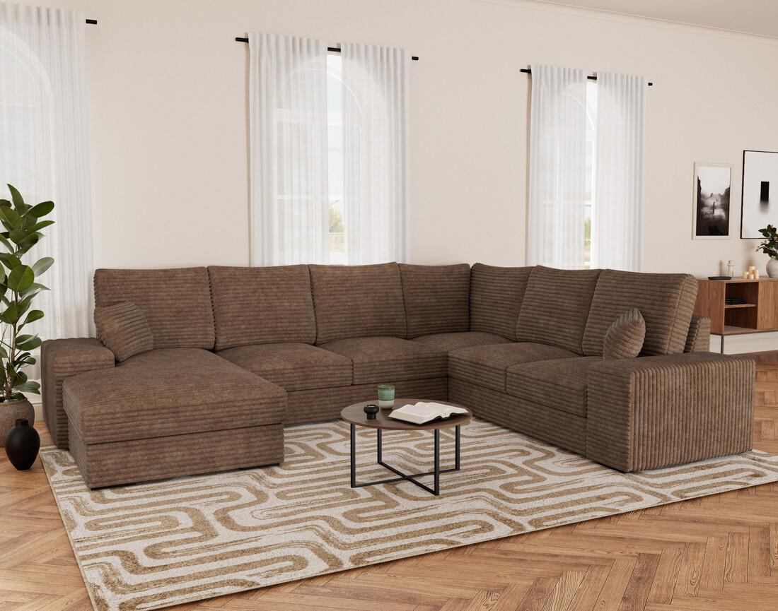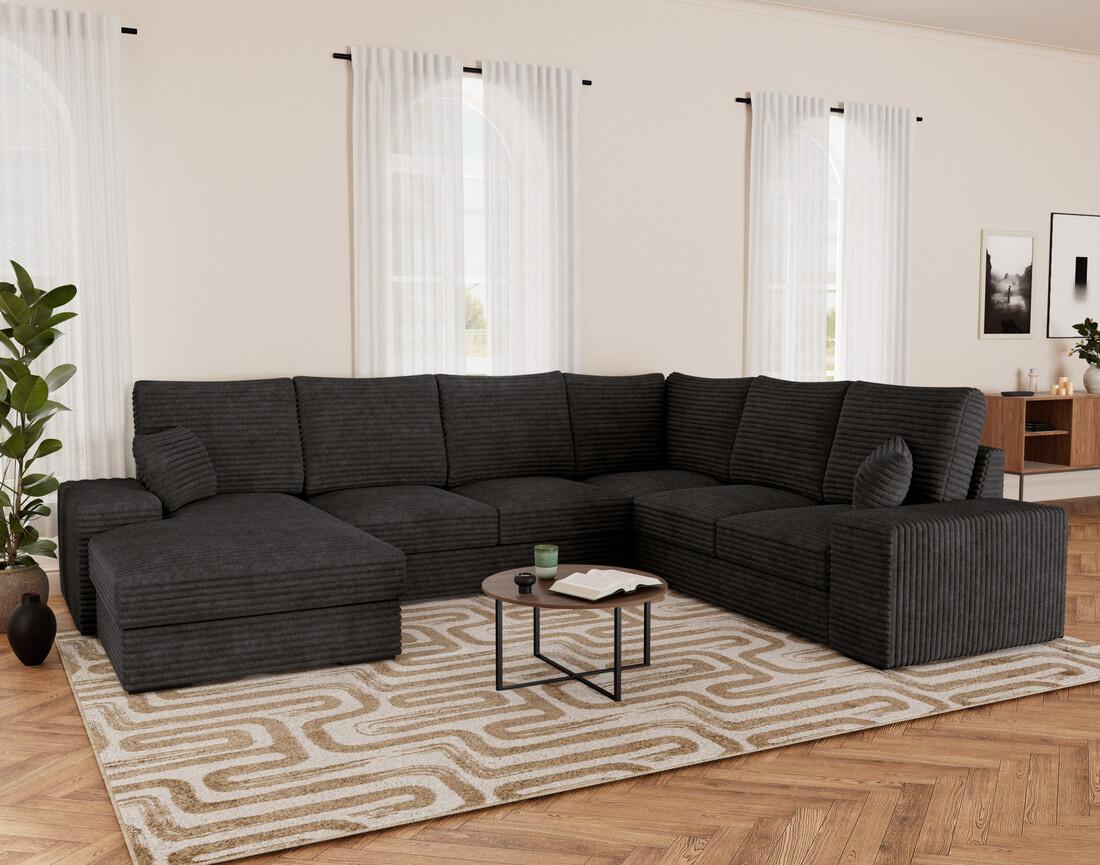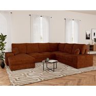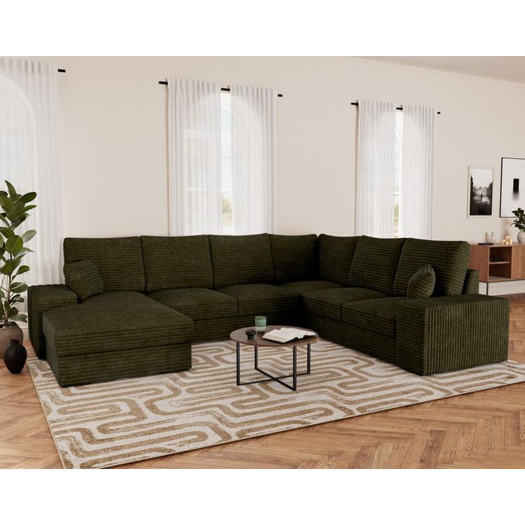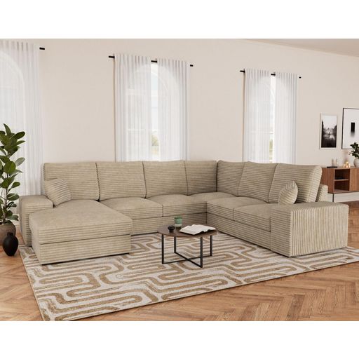 Lorie - canapé panoramique d'angle droit 7 places convertible en velours côtelé grosse côte avec coffre
