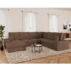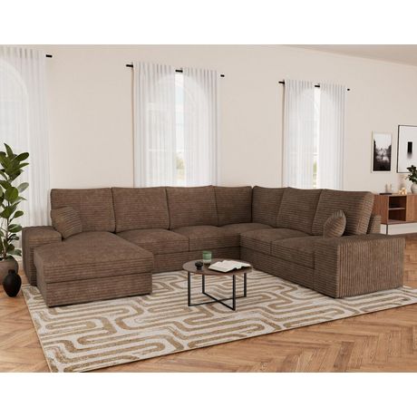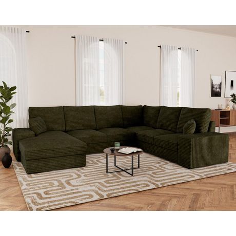 Canapé panoramique d'angle droit 7 places convertible en velours côtelé grosse côte conjugue avec brio design contemporain et bien-être optimal. Ses lignes généreuses apportent une touche de sophistication à votre espace de vie, tandis que son revêtement en velours côtelé épais offre une sensation de douceur incomparable. Conçu pour accueillir jusqu'à sept personnes, ce canapé devient l'endroit idéal pour partager des instants chaleureux en famille ou entre amis. Sa texture agréable au toucher et sa robustesse garantissent un confort durable, sublimant ainsi votre intérieur avec élégance.
