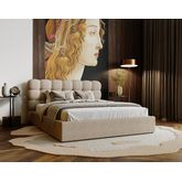 Le lit coffre Lotus 140x200 cm s'habille d'un tissu bouclette ultra tendance, apprécié pour son aspect texturé et son toucher réconfortant. Sa tête de lit capitonnée renforce l'aspect chaleureux du modèle, tout en apportant une touche décorative pleine de caractère. Grâce à sa fabrication européenne, Lotus conjugue style actuel et qualité de conception pour une chambre à la fois moderne et accueillante.