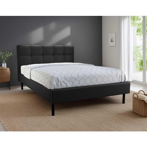 Apportez de la modernité à votre chambre avec le lit Magritte. Ses pieds en métal, sa tête de lit capitonnée et son revêtement en simili cuir lui donne un aspect sobre et unique. Le lit Magritte est un lit de 140x190 cm pour deux personnes avec sommier à lattes inclus. Disponible en deux coloris ainsi qu'en 160x200 cm, adoptez ce lit pratique pour meubler votre chambre à petit prix !
