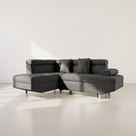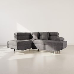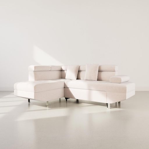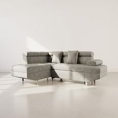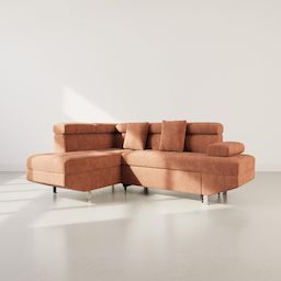 Margaux - canapé d'angle gauche 5 places convertible avec coffre et têtières réglables en velours texturé